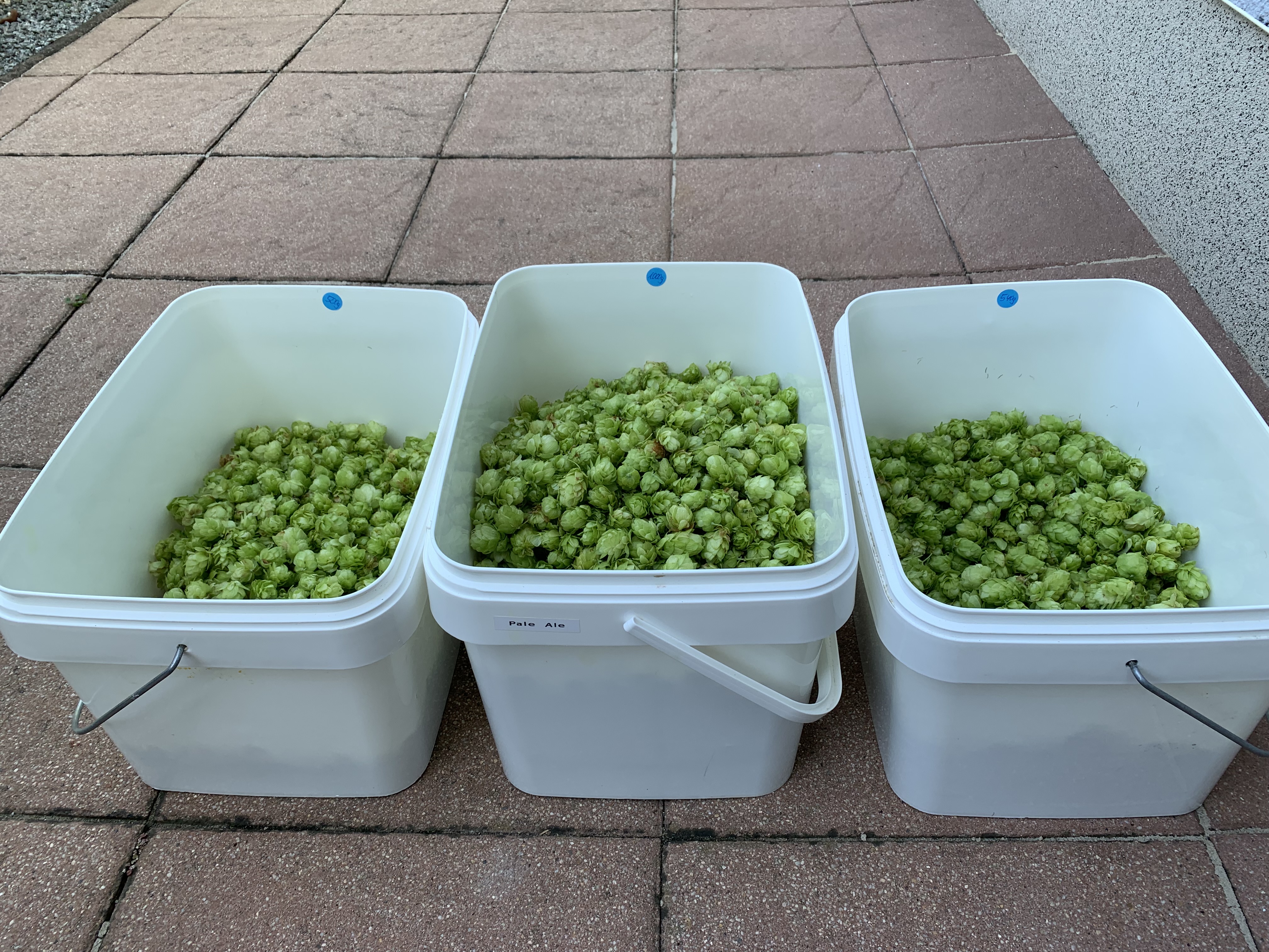 Habe dieses Jahr 5 kg Dolden ( Golding, Tettnanger, Tradition und Cascade ) geerntet. Der mengenmäßig meiste Dolden wird jedes mal als Grünhopfen verbraut
