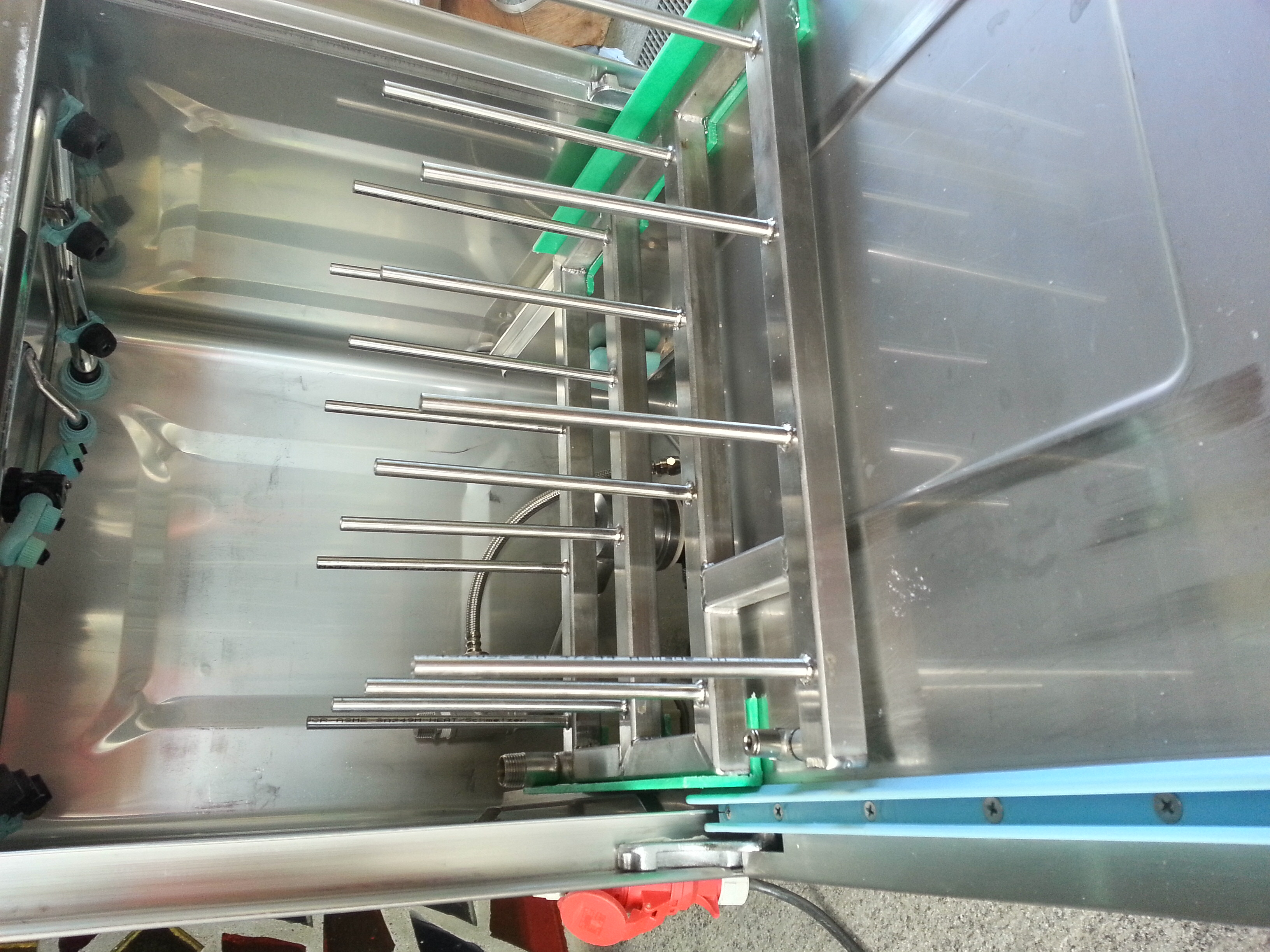 Es lag dann nahe über die Spülrohre nachzudenken. Da passende Sprüh-/Spritzdüsen in Edelstahl schier unbezahlbar sind, ging ich zu der rabiateren Variante über und habe die Enden kurzerhand mit ner Zange "leicht" gequetscht.