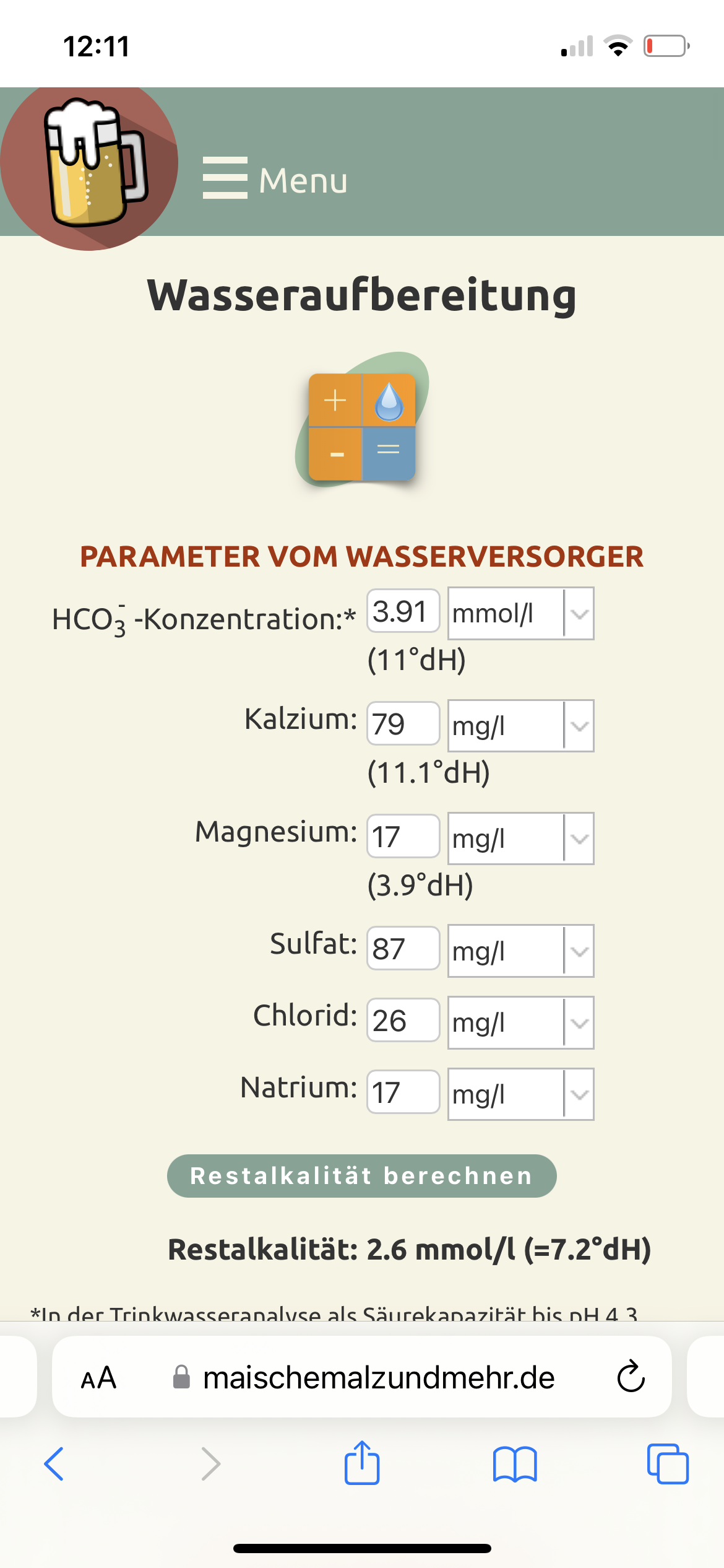Hast Du vielleicht auch eine Trinkwasseranalyse von Deinem Brauwasser.