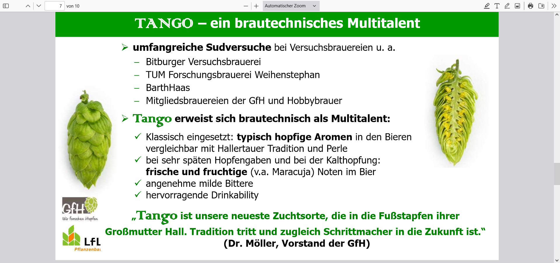 Mich würde die neue Aromasorte TANGO aus der Hüller Hopfenzüchtung reizen.