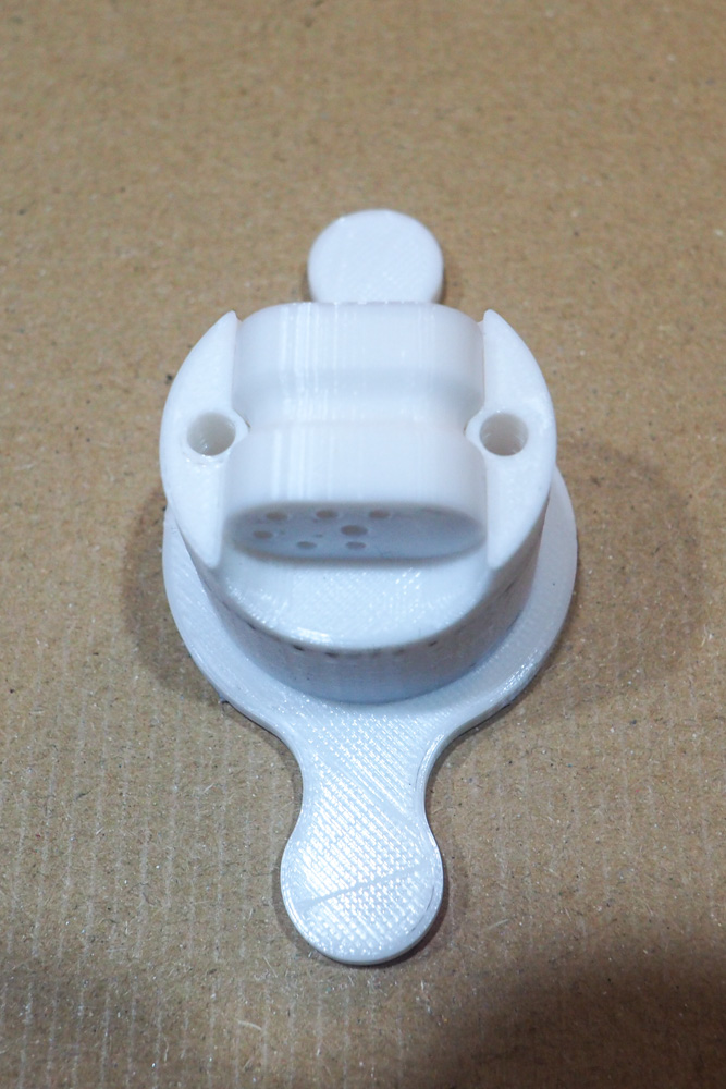 Eine offene Variante eines "Zuckerspenders" der nach dem gleichen Prinzip wie die von Volker funktioniert. Anstatt eines Trichters hab ich einen Schraubverschluss dran gemacht, der auf die gängigen PET Flaschen passt. So kann man sich entweder nen Trichter selber basteln, oder einfach den Zucker wiederverschließbar gleich in so einer Flasche lagern und dann den Spender einfach drauf schrauben wenn man ihn braucht. Man kann die Portionsgrößen auch wechseln in dem die "Portionierer-Einheit" austauschbar ist. Ist alles sicherlich nicht perfekt gelöst, aber für den ersten Versuch hats gereicht.