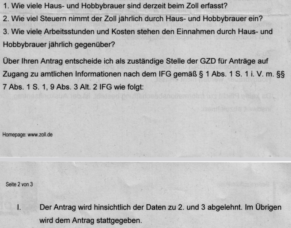 Die Zahlen hätte ich eventuell bekommen können, die Pressestelle ist nicht die korrekte Stelle zum Beantworten von dieser Art FragDenStaat-Anfragen. Aber auch ich habe besseres zu tun mit meinem Leben als zu klagen. Z.B. mal wieder 6-7L Bier brauen, Läuterboden oder Rührwerk für den 10L Topf konstruieren – whatever.