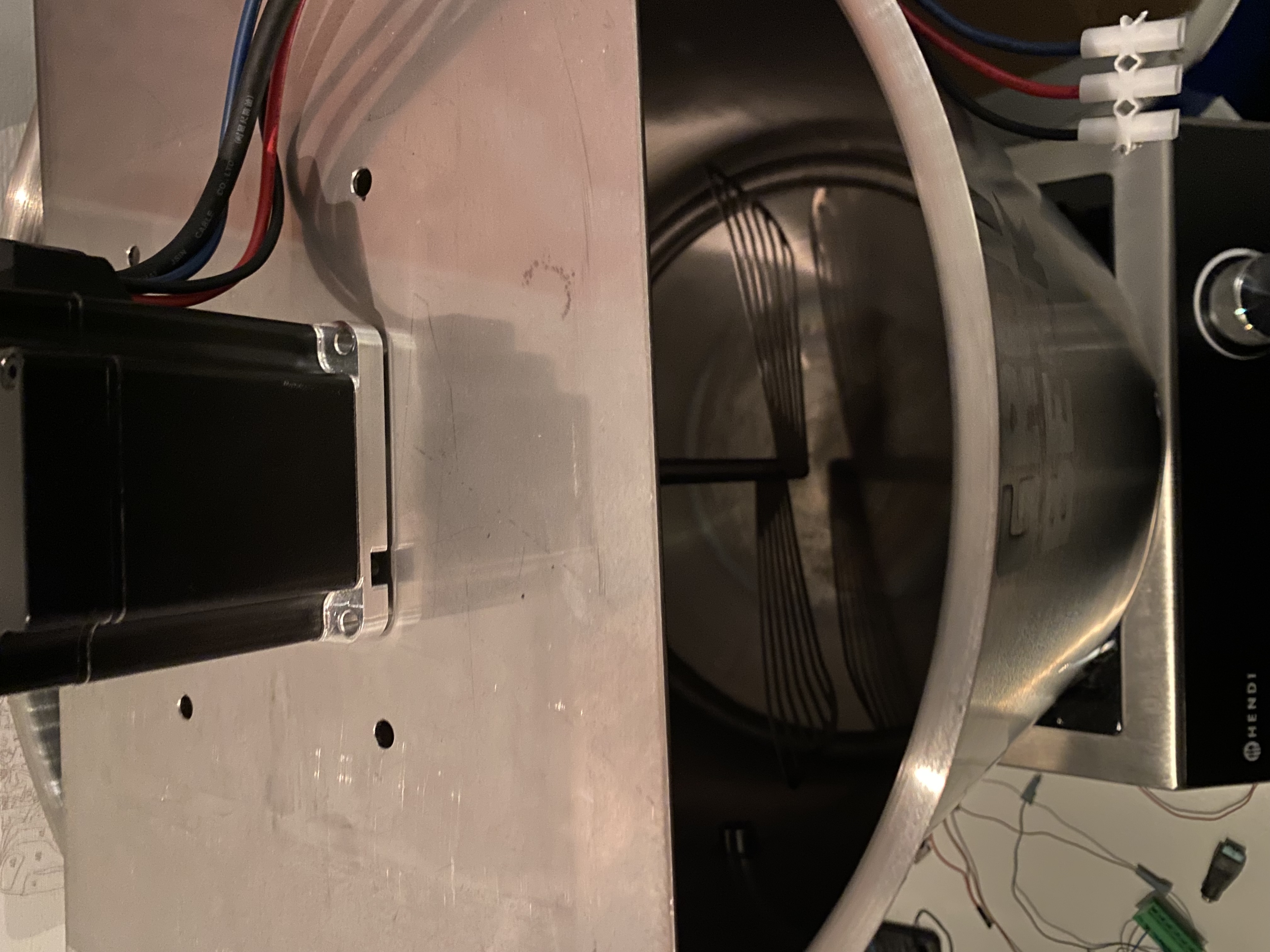 ich möchte mich von der 20l Klasse auf die 40l Klasse vergrößern. Bisher habe ich einen BLDC Motor (24V, 15A mit 3Nm), einem Siemens Netzteil (Sitop psu100s mit 20A) und einem 300W Motortreiber als Rührwerk verwendet. Dieser hat einen selbstgebasteltes Rührpaddel angetrieben (siehe Fotos). Leider hat der Motor bei den letzten 20l Suden immer häufiger das Problem, dass er zwischendurch ausgeht und dann nicht mehr ans Laufen kommt, weil vermutlich das Anlaufmoment zu hoch ist. Bei dem ersten 40l Sud ist der Motor dann garnicht mehr ans Laufen gekommen und wir mussten von Hand rühren. Außerhalb der Maische zeigt der Motor das Verhalten nicht. Ist so ein BLDC Motor vielleicht einfach ungeeignet für einen solchen Einsatz? Ich würde ungern wieder alles umbauen. Bei den ersten Suden hatte ich dieses Problem noch nicht, ich könnte mir vorstellen, dass der Dampf den Lagern zu schaffen gemacht hat (der Motor hat keine Wellendichtung).
