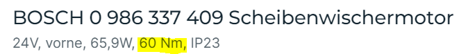 Zur Aussage bzgl. Drehmoment der Scheibenwischermotoren: