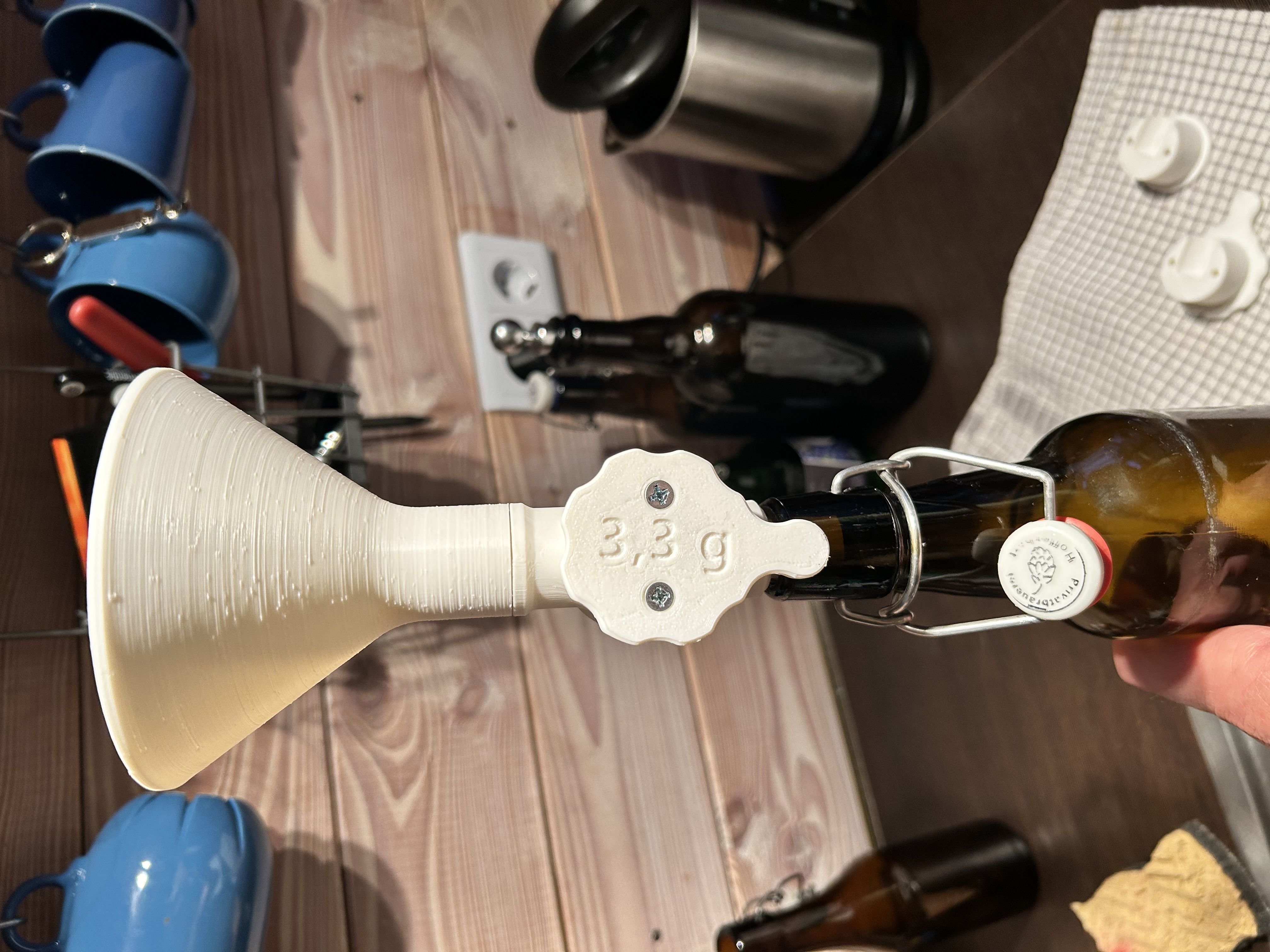 Servus bin über die Facebook Gruppe auf diesen Post gestoßen habe mir den Trichter gedruckt. Könntest Du mir die Dateien für 3,8g bzw die gängigen für 0,33 l und 0,5 l teilen?froensberg hat geschrieben: Montag 20. Januar 2025, 12:05 Hallo,