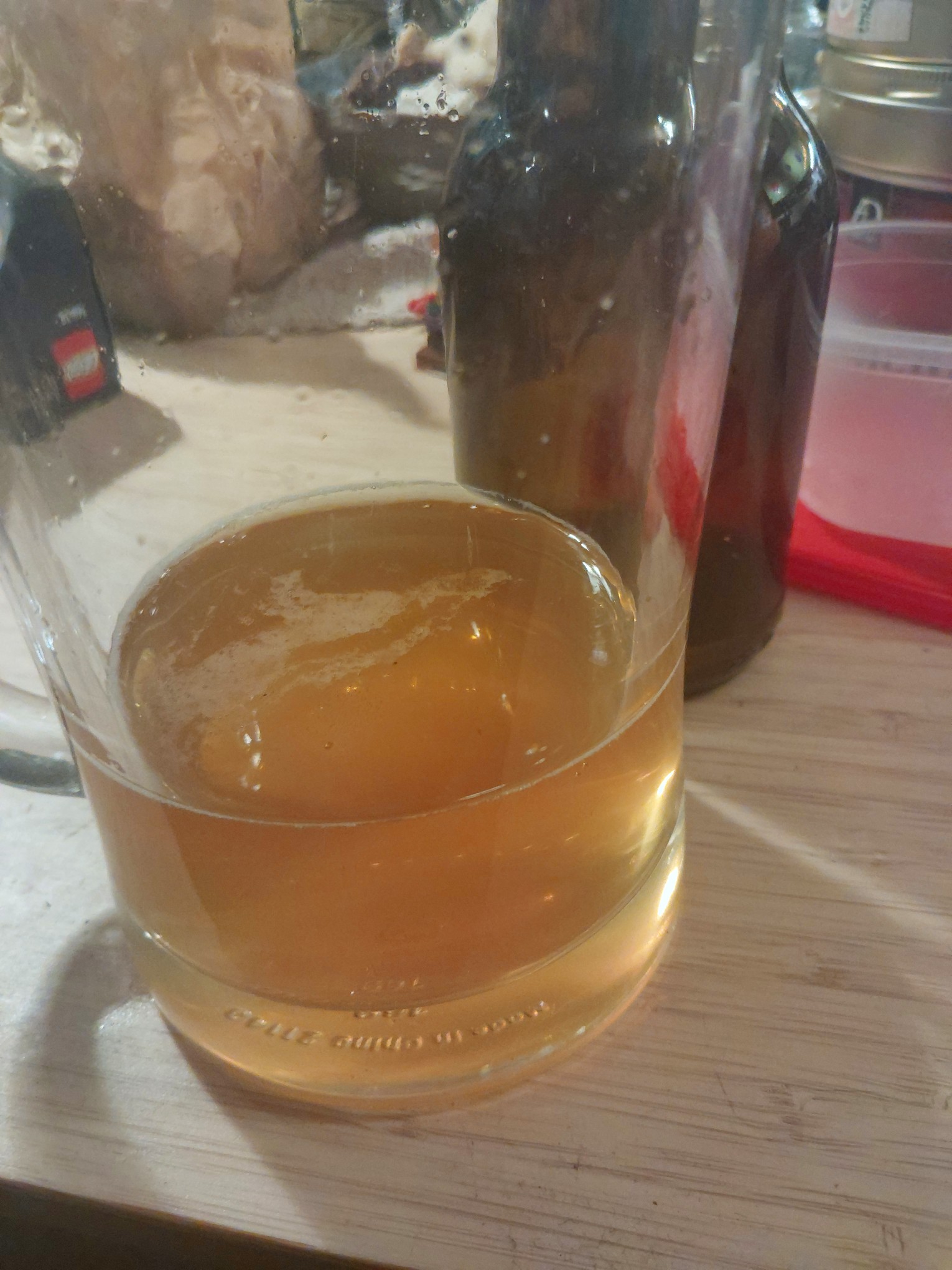Der erste Schluck: Es ist Bier, es schmeckt wirklich nach Bier. Die Bitter ist mehr als ich erwartet habe. Das Bier hat eine ganz leicht säuerliche Note. Es gibt eine Restsüße ohne das klassische Malzgerüst, wirkt aber nicht schlecht. Auch meine Frau (eher die klassische Biertrinkerin) sag „oh schmeckt aber interessant“. Den Geschmack des Bieres kann ich nicht richtig deuten, erinnert mich etwas an Topinambur, aber so ganz konnte ich den Geschmack nicht einordnen.