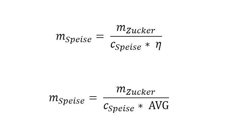 m[Speise]= 1,22*m[Zucker]*100/((Stammwürze-sRE))