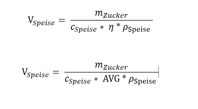 m[Speise]= 1,22*m[sZucker]/((Stammwürze-sRE)/100)