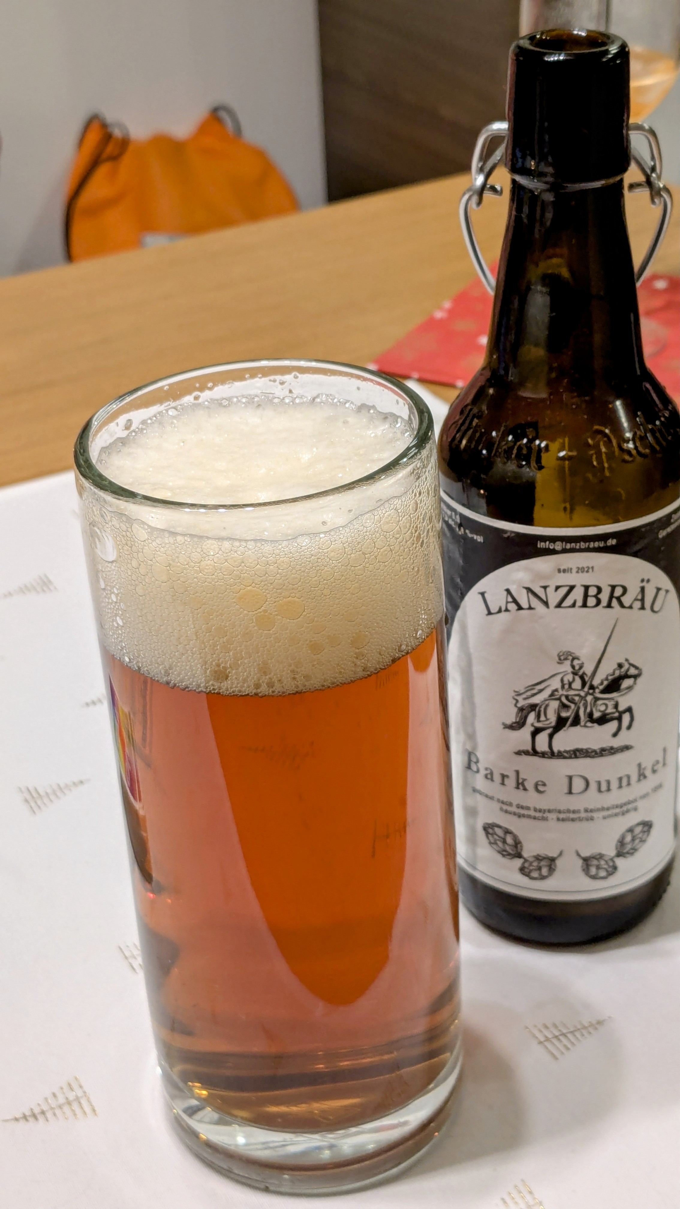 Und nun noch ein weiteres von LANZBRÄU. Das "Barke Dunkel" Wie der Name sagt ist hier hauptsächlich Barke Malz von der Sorte Münchner und eine Prise Pilsner Malz verbraut. Als Hopfen kam ausschließlich Tradition hinein. Das ganze mit der W34/70 vergoren.