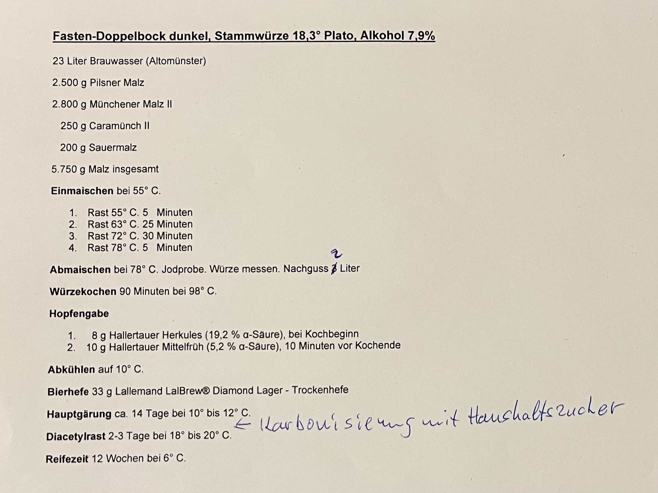 50 g Sorachi Ace (10 %, iwas englisches war nicht da in der Truhe), 60 min, 20 min Iso