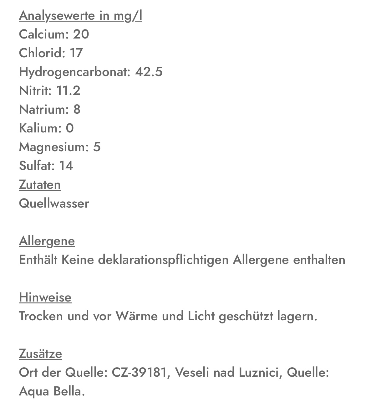 Die Werte haben sich zum Teil verändert, Sulfat scheint stand 2022 7,2 mg/l zu sein, zumindest erscheint dieser Wert wenn man den QR code auf dem Kanister einscannt.