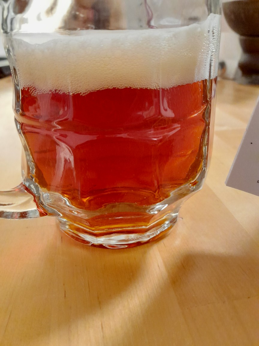 Der Erste Schluck; weniger Malzig als ich es erwartet habe, die Bittere ist eher zurückhaltend, aber es hat eine deutlich hopfige, würzig frische Note, gefällt mir. Obwohl ich das Original Bier, also zumindest das Steam Bier der Anchor Brewery schon öfters getrunken habe, hätte ich dies nicht zusammengebracht. Aber das gefällt mir besser, da es hopfiger ist. Ich habe noch nie mit Northern Brewer gebraut, aber ich werde mich den Hopfen mal besorgen. Die Bitter ist nicht sehr bitter aber sehr langanhaltend. ein sehr frisch wirkendes Bier.