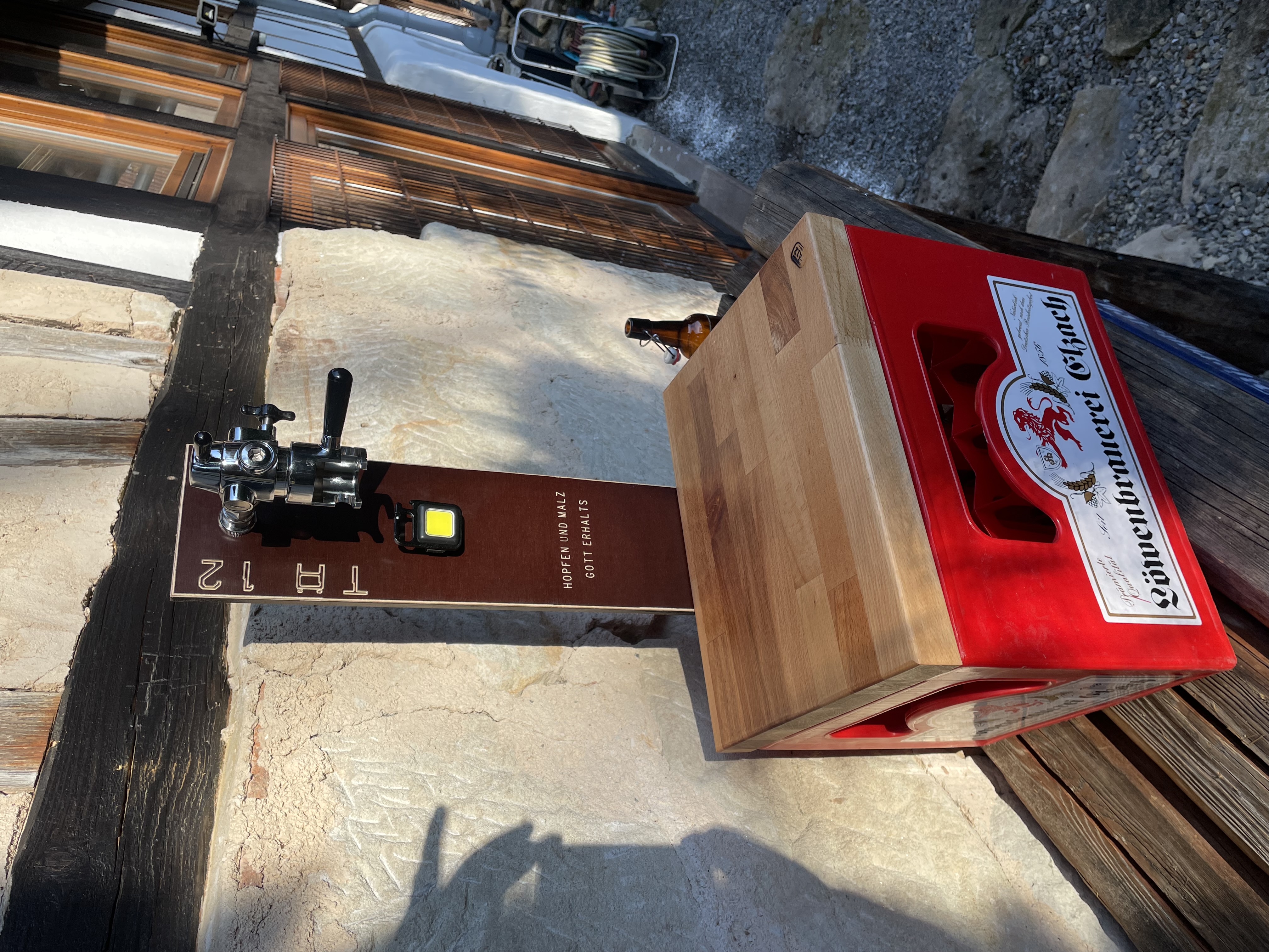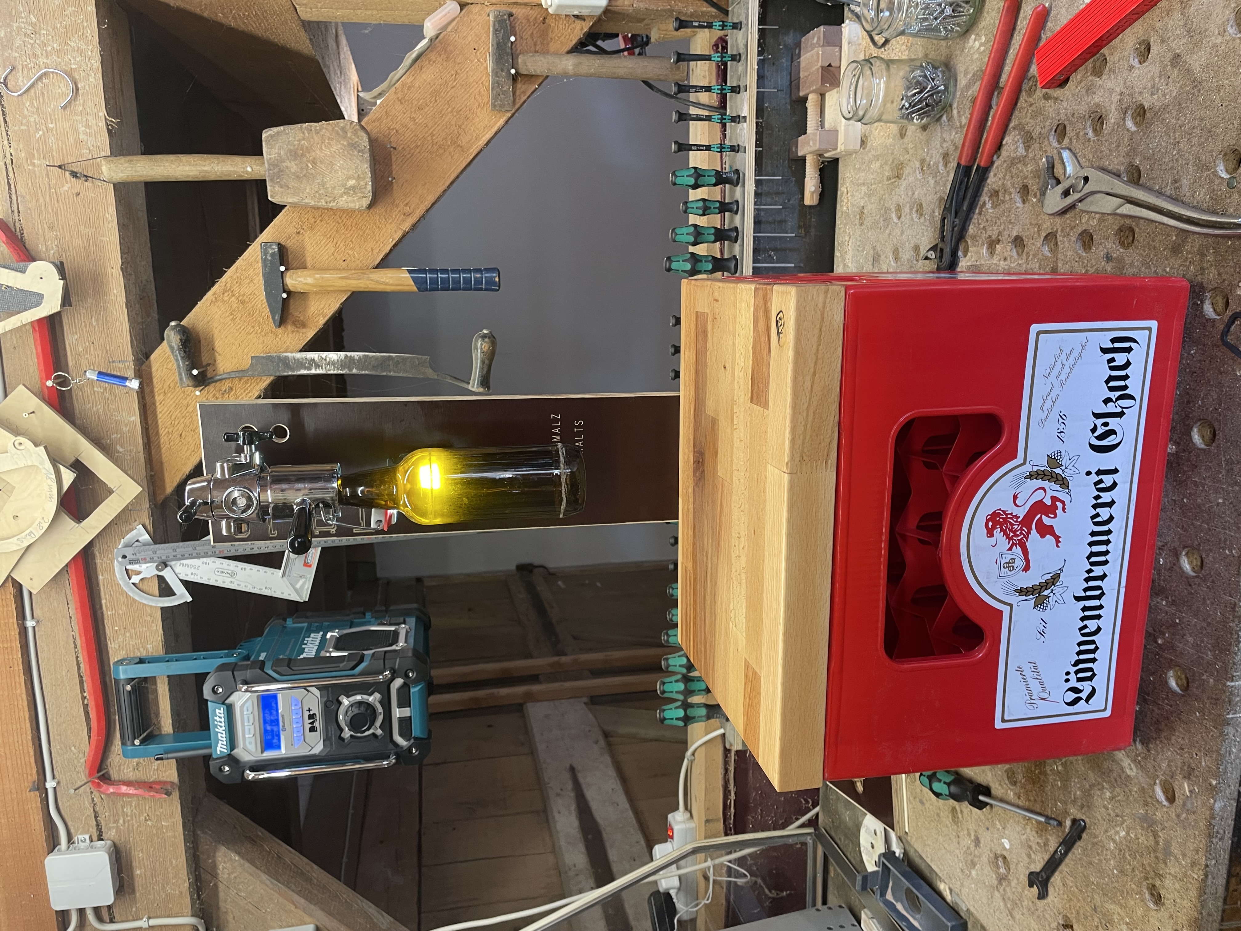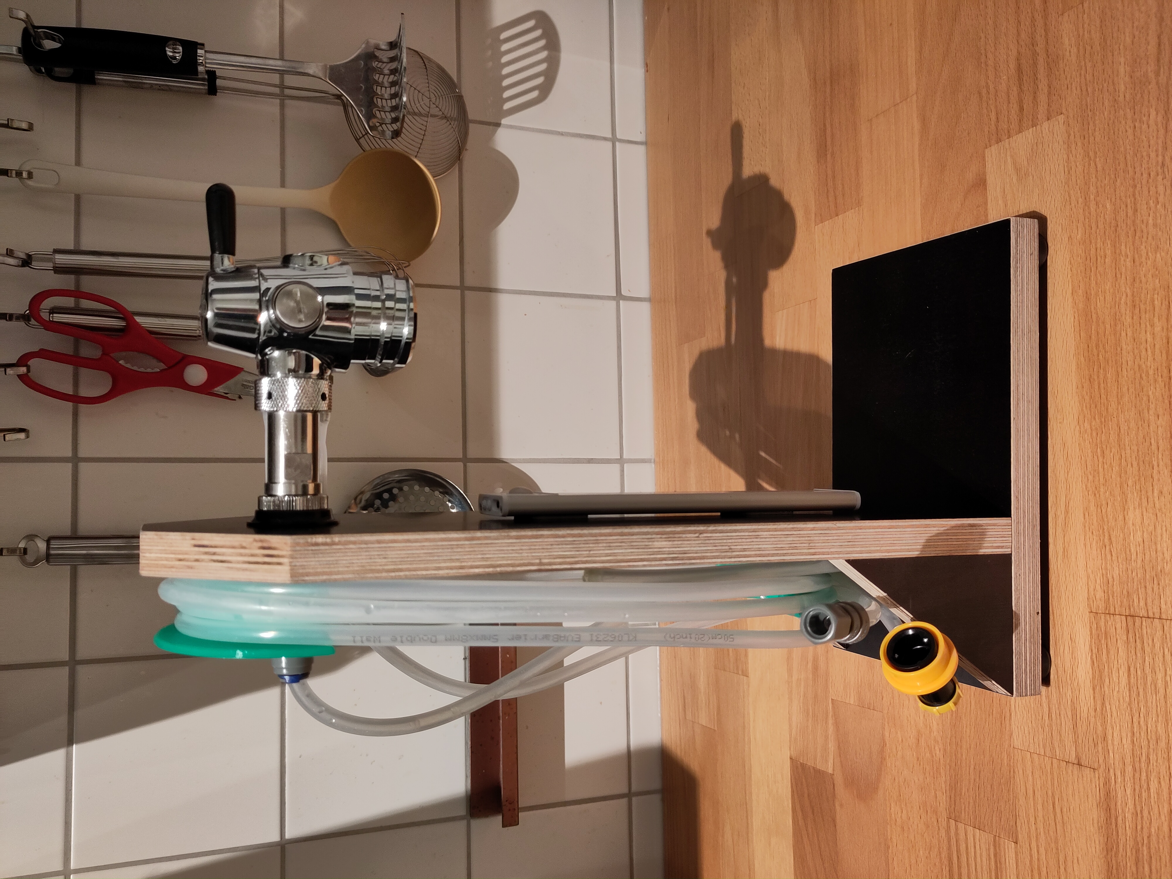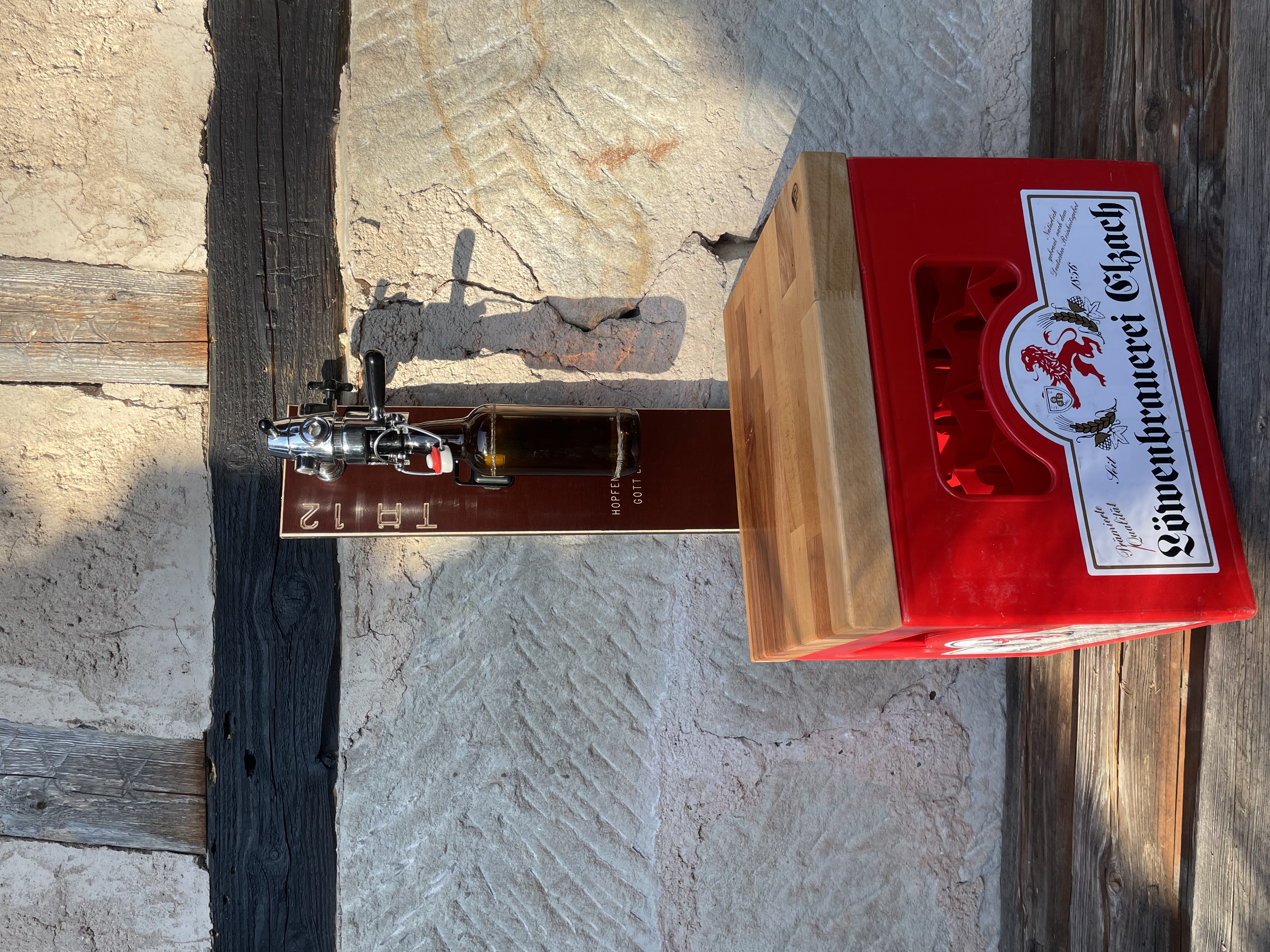 ich habe mir -nachdem ich inzwischen unter Druck vergäre- Gedanken über einen Gegendruckabfüller machen müssen. Nachdem das schicke Gerät diese Woche ankam und ich gestern zum basteln kam, habe ich das Teil wie auf den Bildern zu sehen montiert. Leider haben meine Schläuche und Anschlüsse nicht gepasst, daher kann ich über die Funktionalität noch nichts sagen. Sollte hier schon jemand sein, der mit dem Gerät Erfahrungen hat, würde ich mich über den Erfahrungsaustausch freuen…
