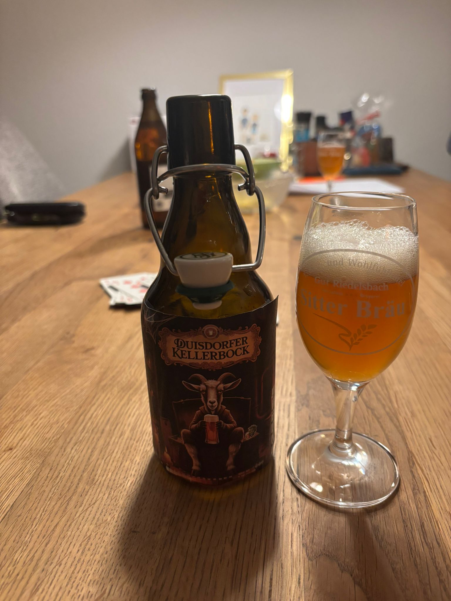 Die erste Flasche meines hellen Bocks beim Skatabend. Noch unrund, aber schon vielversprechend :Bigsmile