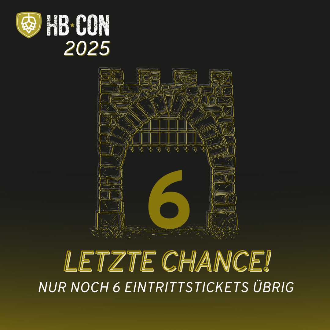 Solltest Du allerdings versäumt haben, das Wichtigste von Allem zu besorgen – die Eintrittskarte für die Heimbrau Convention – dann ist es jetzt höchste Eisenbahn. Denn wir haben nur noch 6 (in Buchstaben SECHS) übrig. Und die sind schneller weg, als der Neujahrs-Kater. Solltest Du also bisher gezögert haben, ist das ein finaler Anschubser.