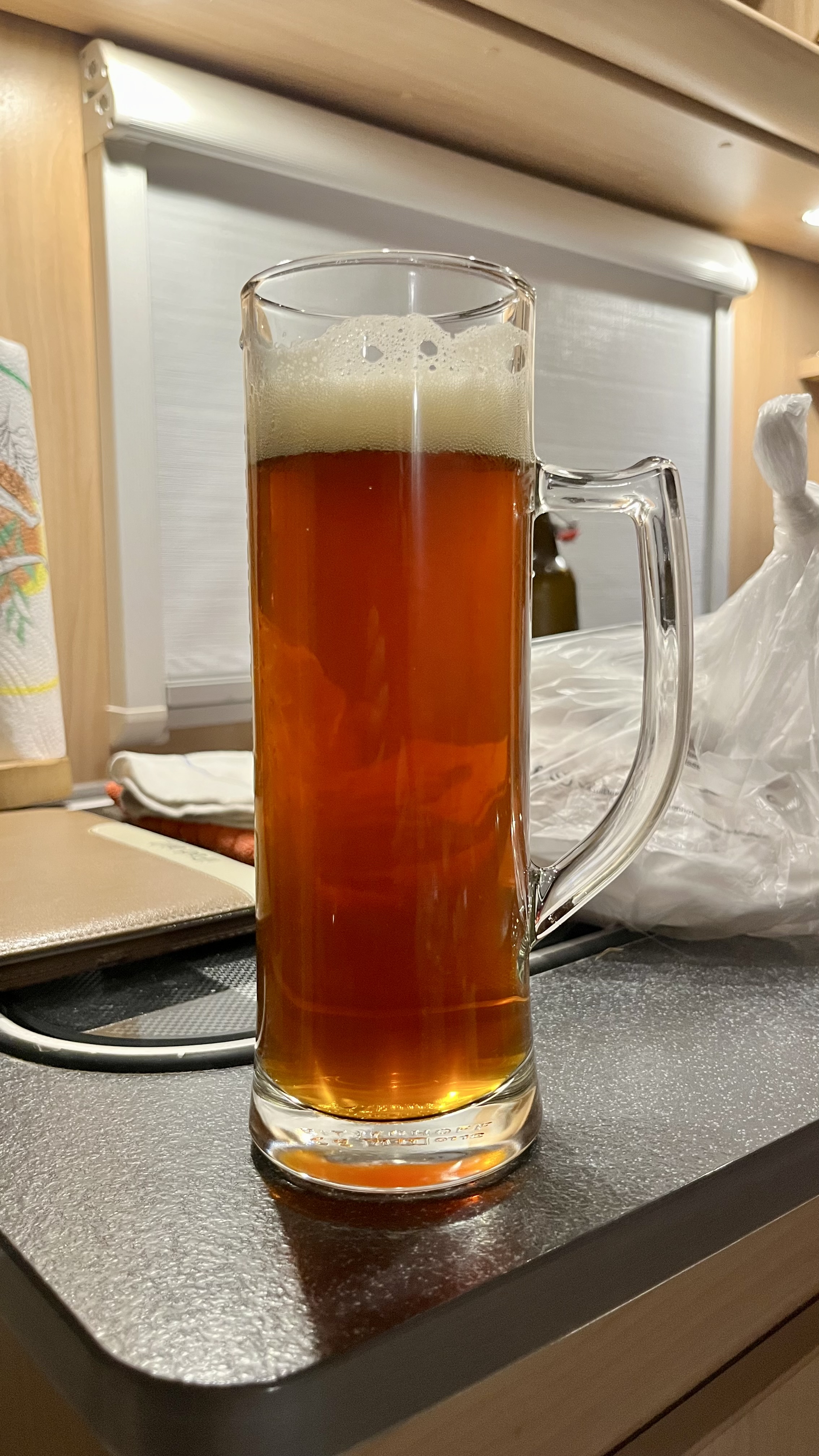 Bei mir gibt es etwas was ich einfach mal als "Ale" bezeichnen würde. Gebraut Anfang Januar als ein erstes eigenes Rezept und ich kann gar nicht mal sagen, wo genau ich hin wollte. Stammwürze 14.0 (höher als geplant), 70% Pilsner, 25% Wiener, 5% Carahell, Citra und Cascade auf ~25 IBU und im Nachhinein viel zu wenig im Whirlpool, um auch nur annährend Hopfenaromen zu bekommen. Mit US-05 am unteren Ende der machbaren Temperaturskala vergoren.