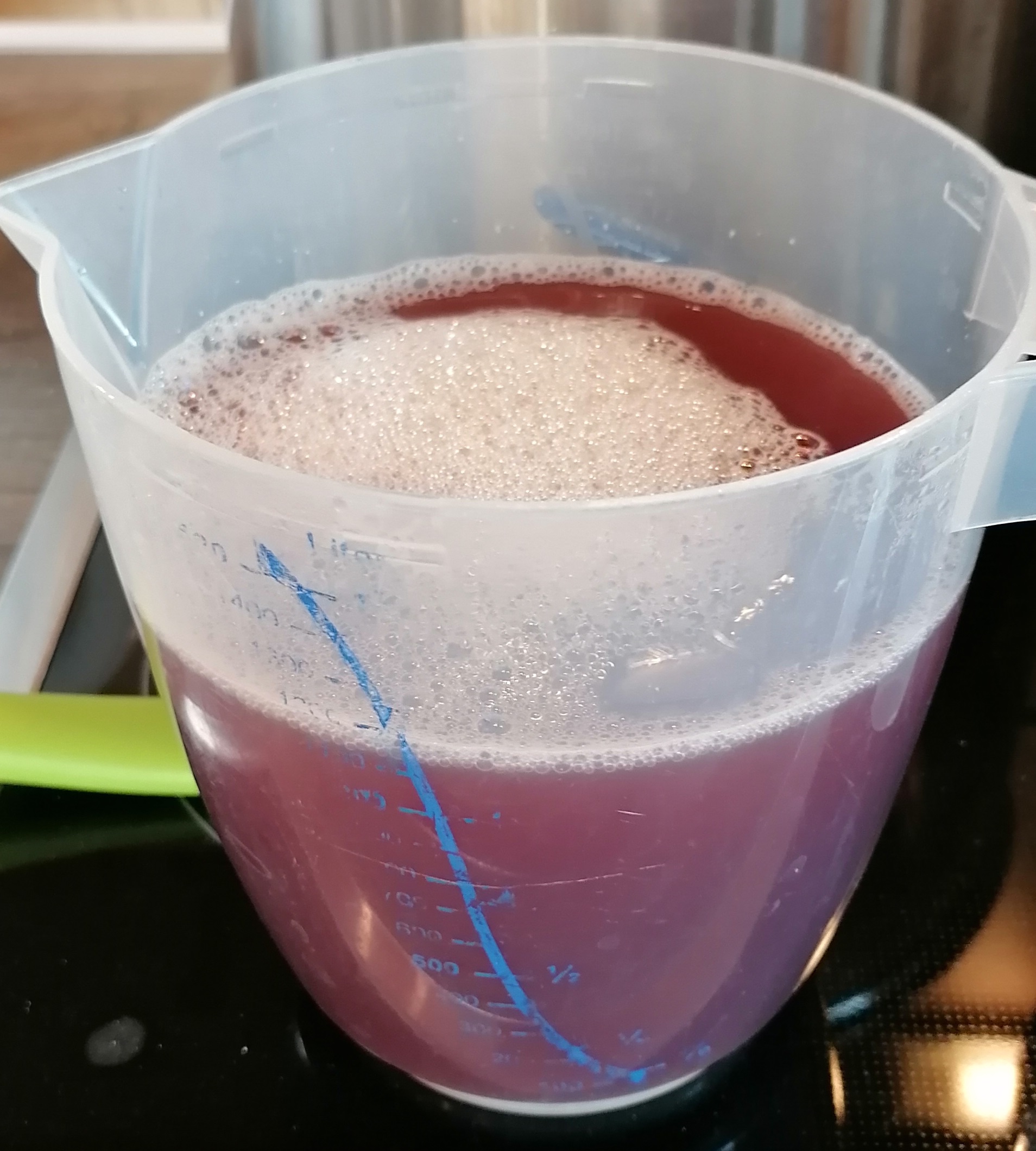Die Heise Brühe hatte etwa 4,5 Brix. Die Rote Bete hatte ich leider vergessen zu messen.