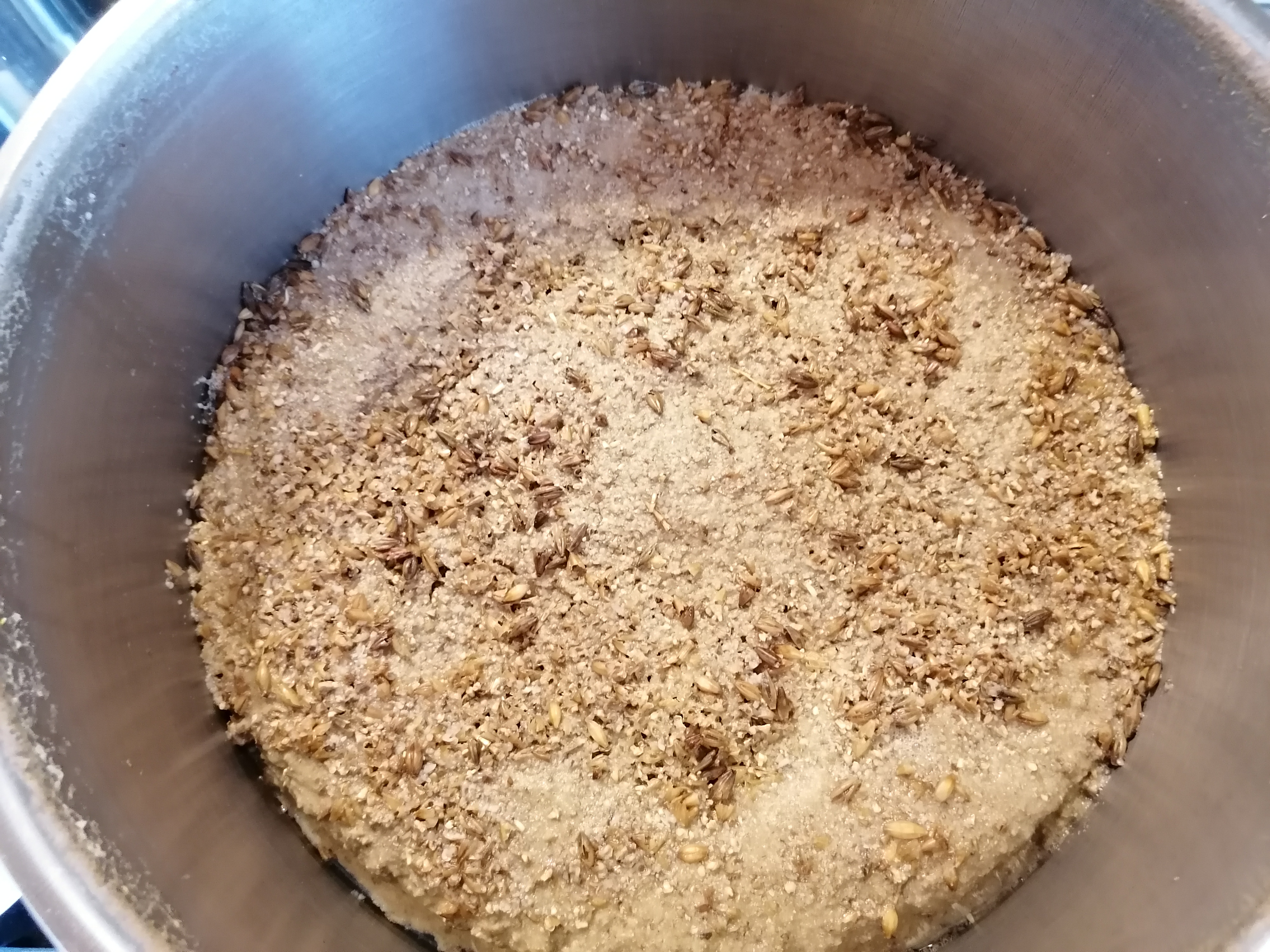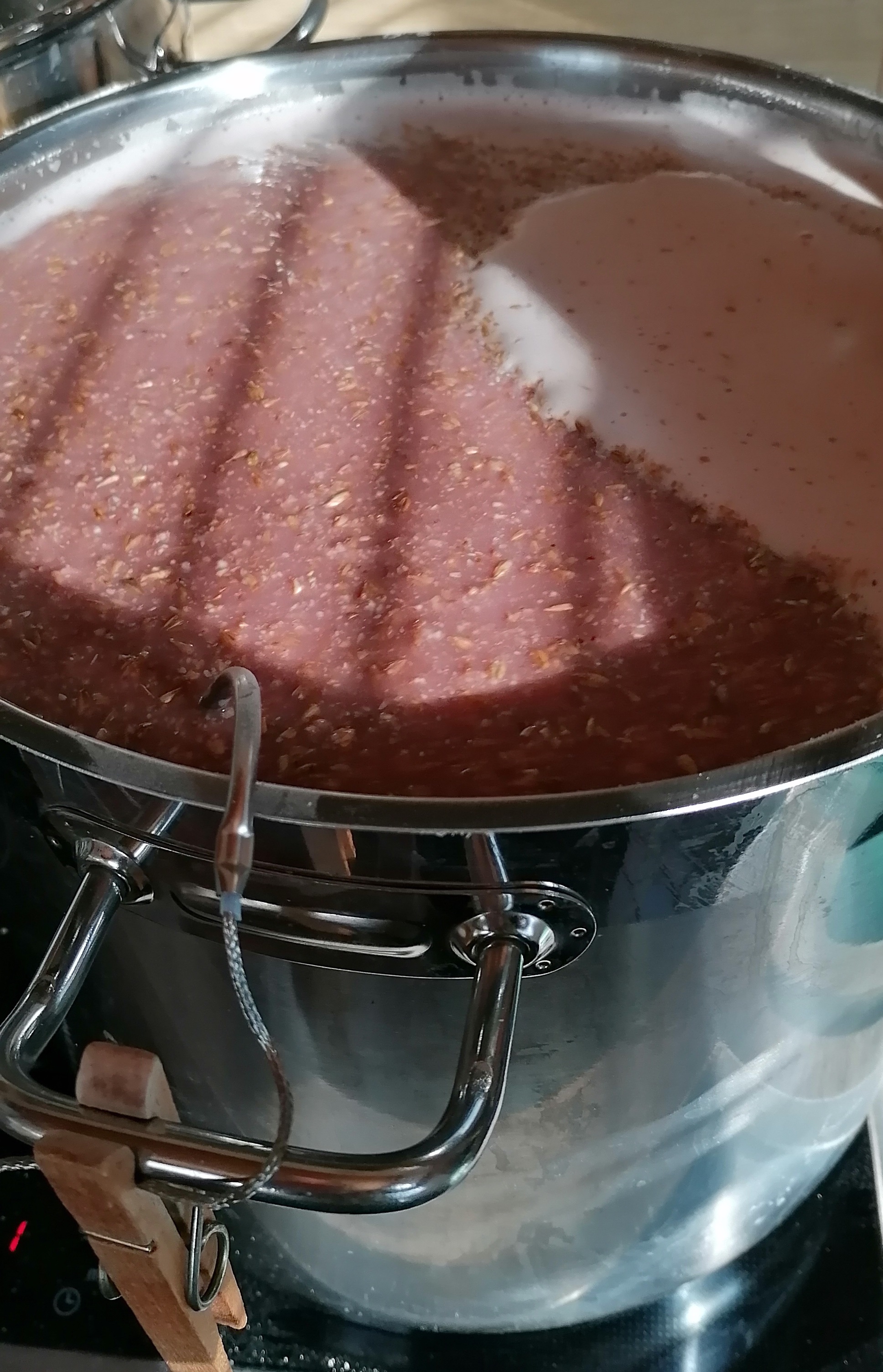 Das Kochwasser aller Zutaten wurde zusammen gemischt, und ergab ca. 7 Liter mit 2,3 Brix.