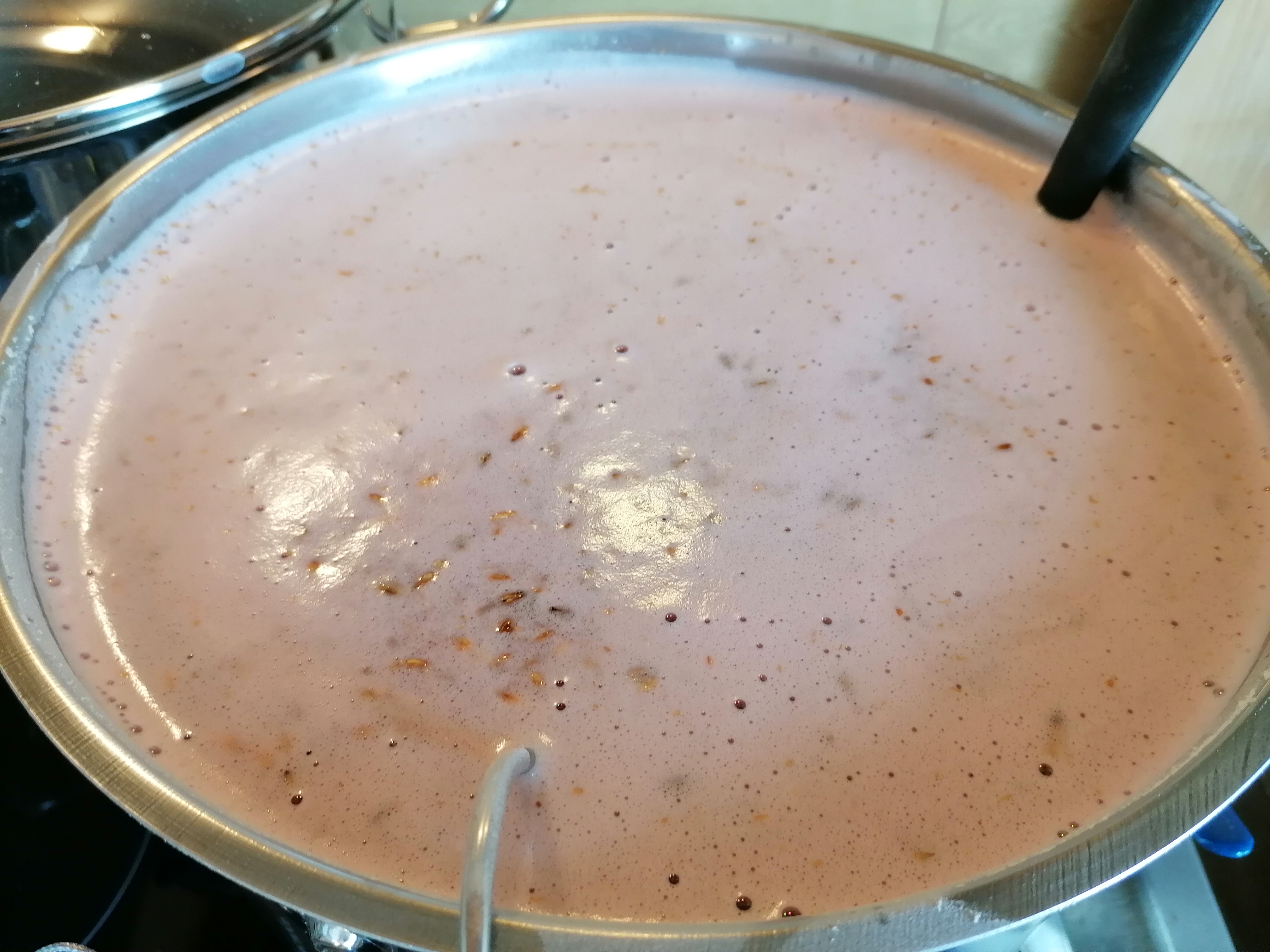 Deshalb jetzt das Kochwasser der Roten Bete hinzu gegeben... schöne Rose Farbe... vorerst...