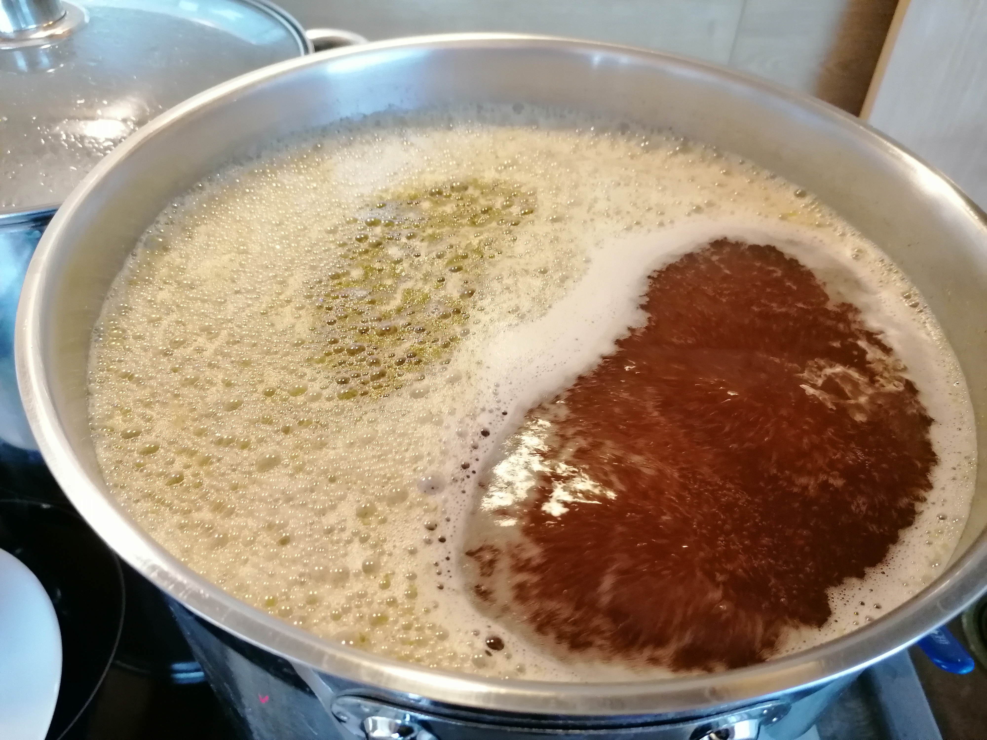 Die Zutaten die für die Farbe zuständig sind, wurden separat gekocht! Damit sollte verhindert werden,