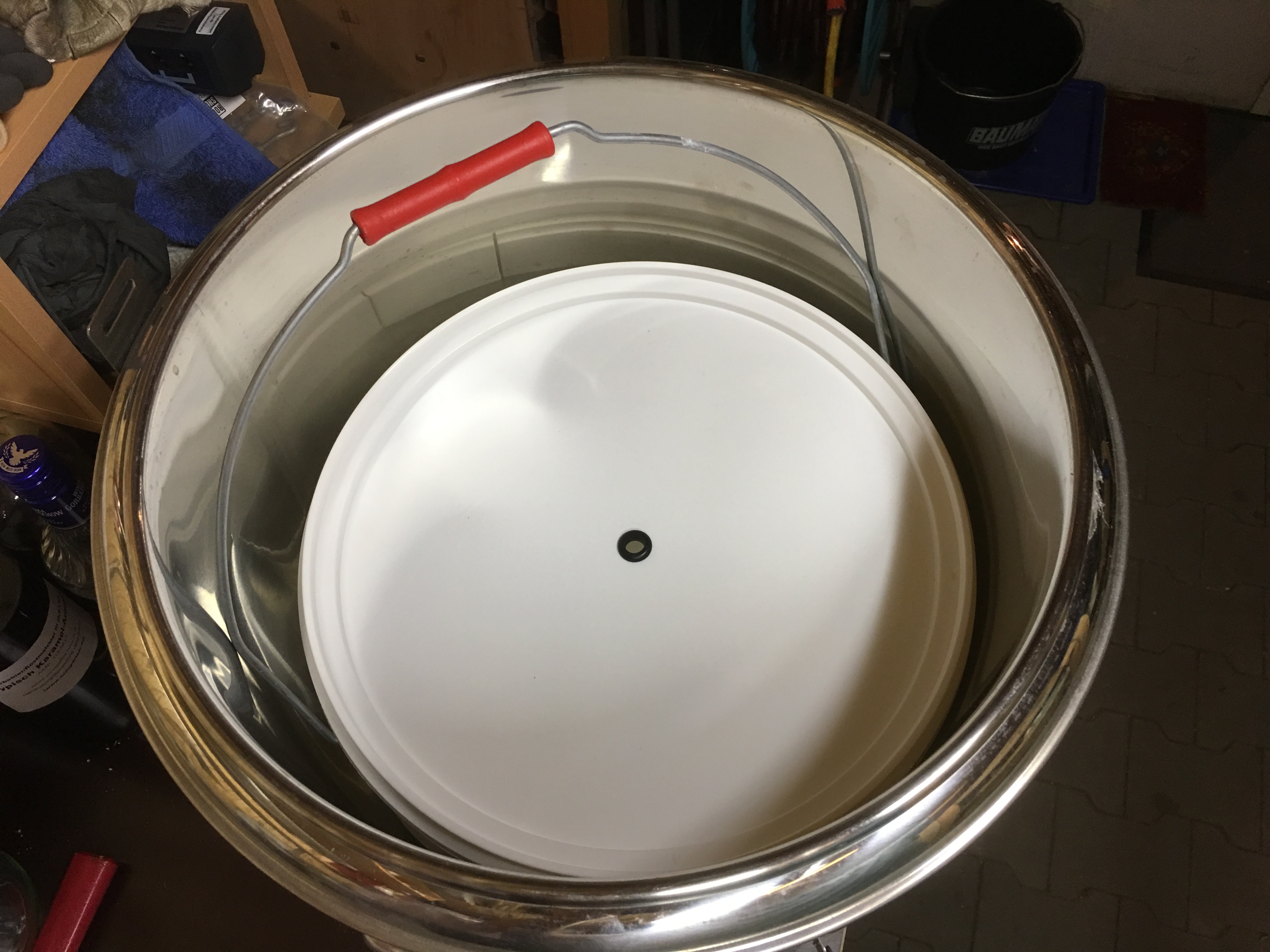 Zum Wasser im Zwischenbehälter: das wird natürlich nach jedem Brauvorgang gewechselt. Es ist ja so gesehen auch keine Kühlflüssigkeit. Ich möchte da auch nichts drinnen haben, was die Entsorgung erschwert. Und wenn mal was undicht sein sollte und ein paar Tropfen es ins Gärfass schaffen, sollte das nicht dazu führen, dass ich gleich den Sud entsorgen muss. Aktuell ist das eher ein Luxus-Problem, so stark verkeimt das Wasser nicht. Vielleicht ein Kopfproblem?