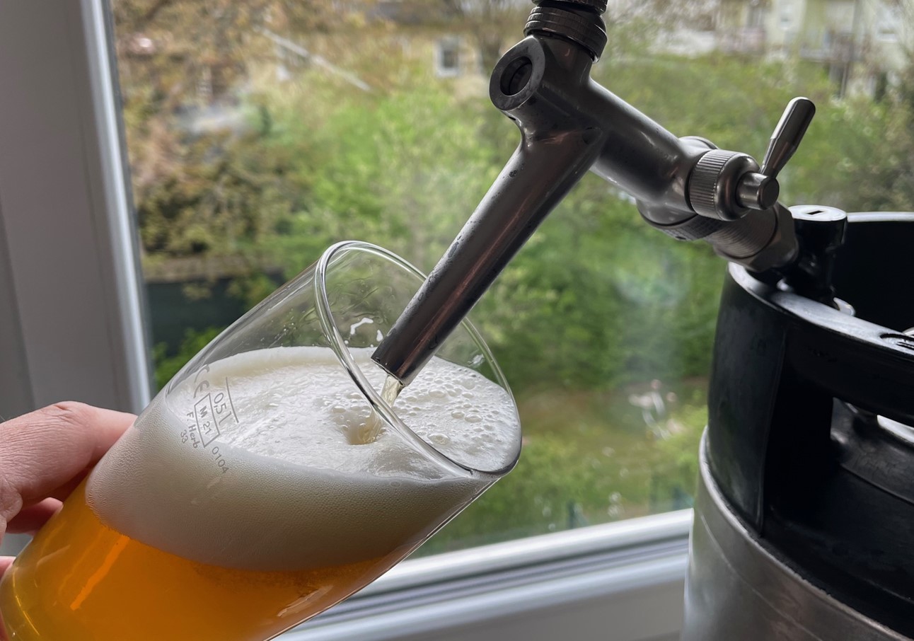 Gestern gab es das Weissbier von hier, nachdem es einige wenige Tage in der Kühlung verbrachte. Farblich, geschmacklich und von der Karbonisierung bin ich schon sehr stolz, die Bitterkeit wird sich noch etwas besser einbinden.