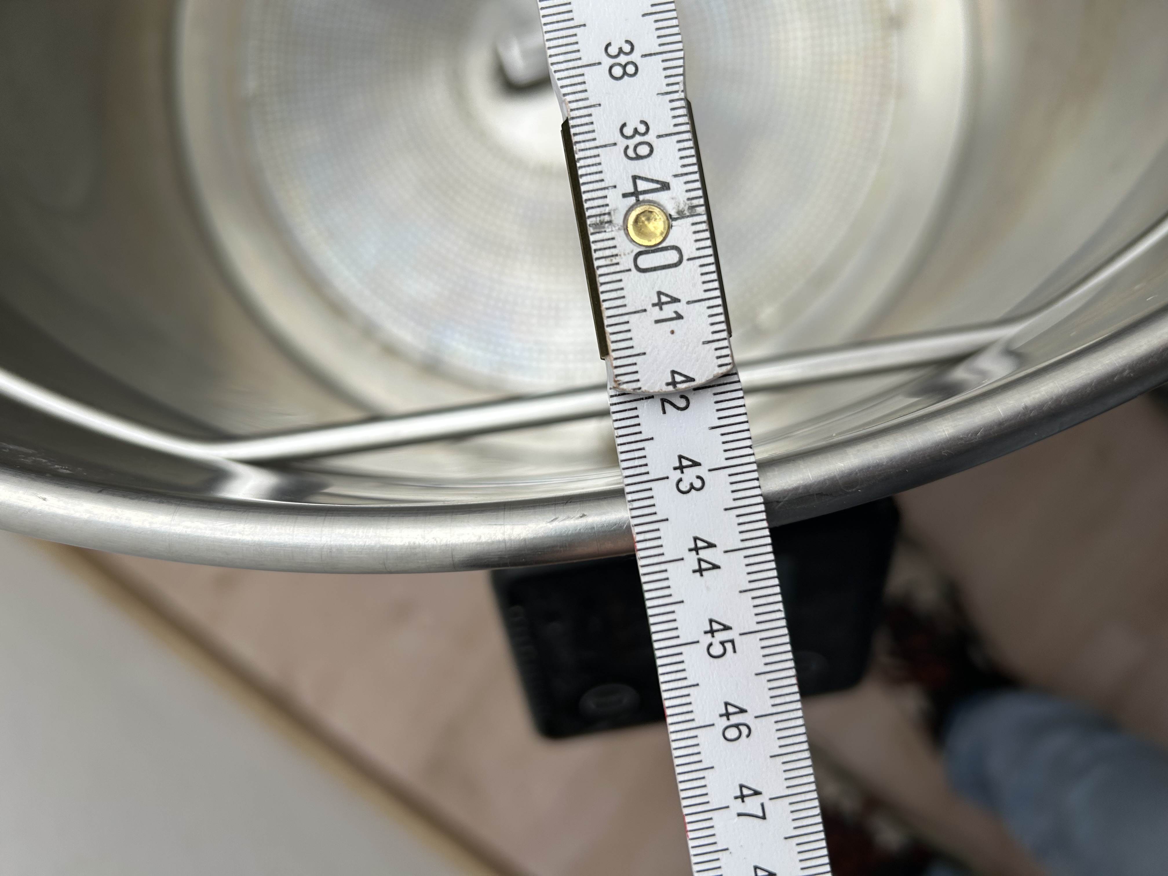 Ich habe noch einen breiten Ring aus einem Klarstein Maischfest (den ich nur zum Erhitzen des Sparge Wassers nehme). Der passt nicht perfekt, aber funktioniert prinzipiell.