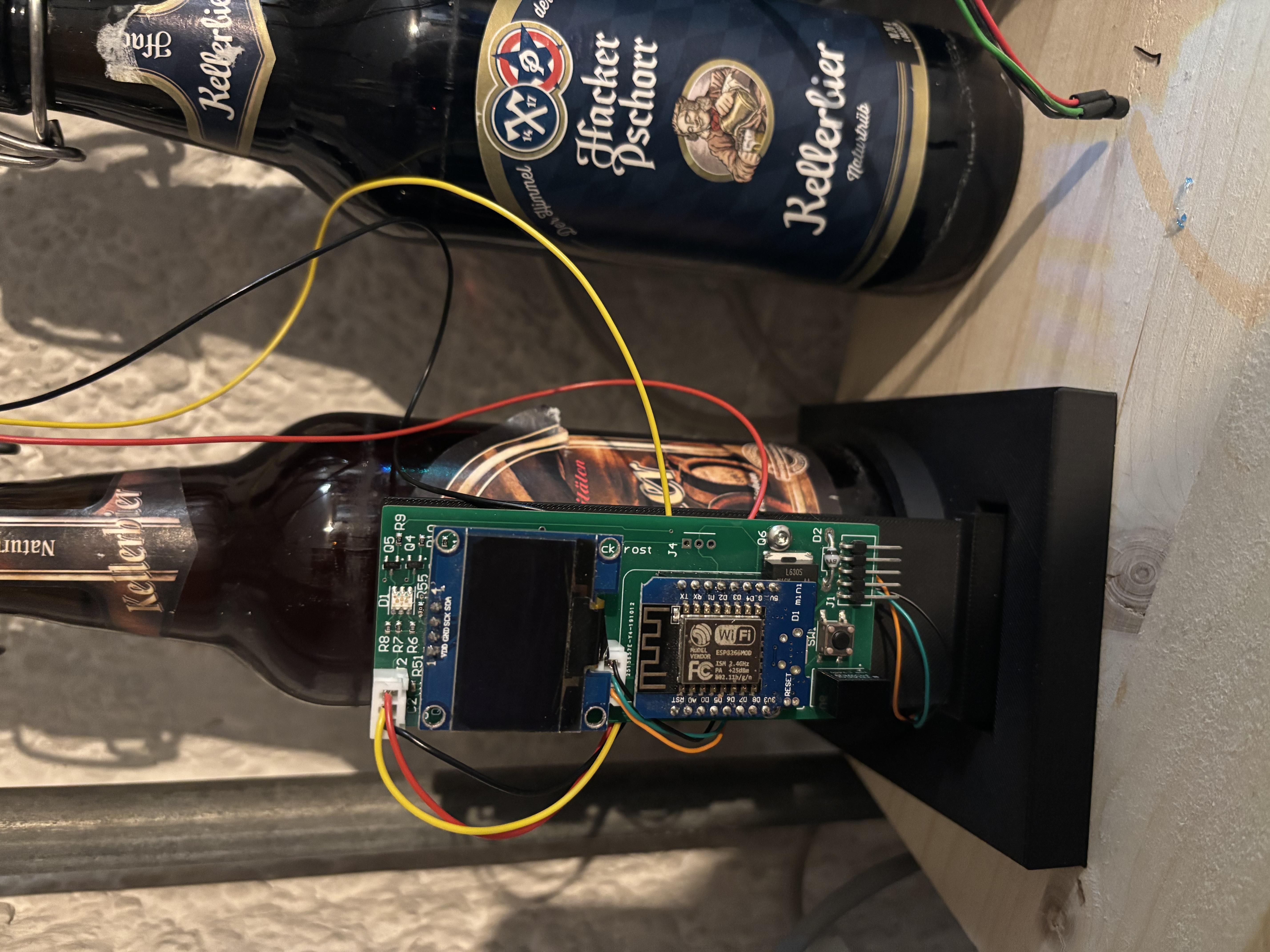 Der DS18B20 ist im Boden mit einem aus TPU gedruckten Halter integriert, damit er sich gegen den Flaschenboden drückt.