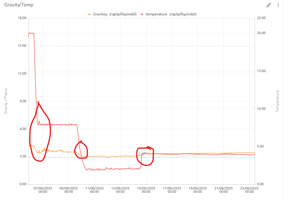 Du sagtest doch anfangs, dass du mit einem Float o.Ä. in der Würze misst. Kannst du uns mal die Kurve zuschicken, die der ausgegeben hat?