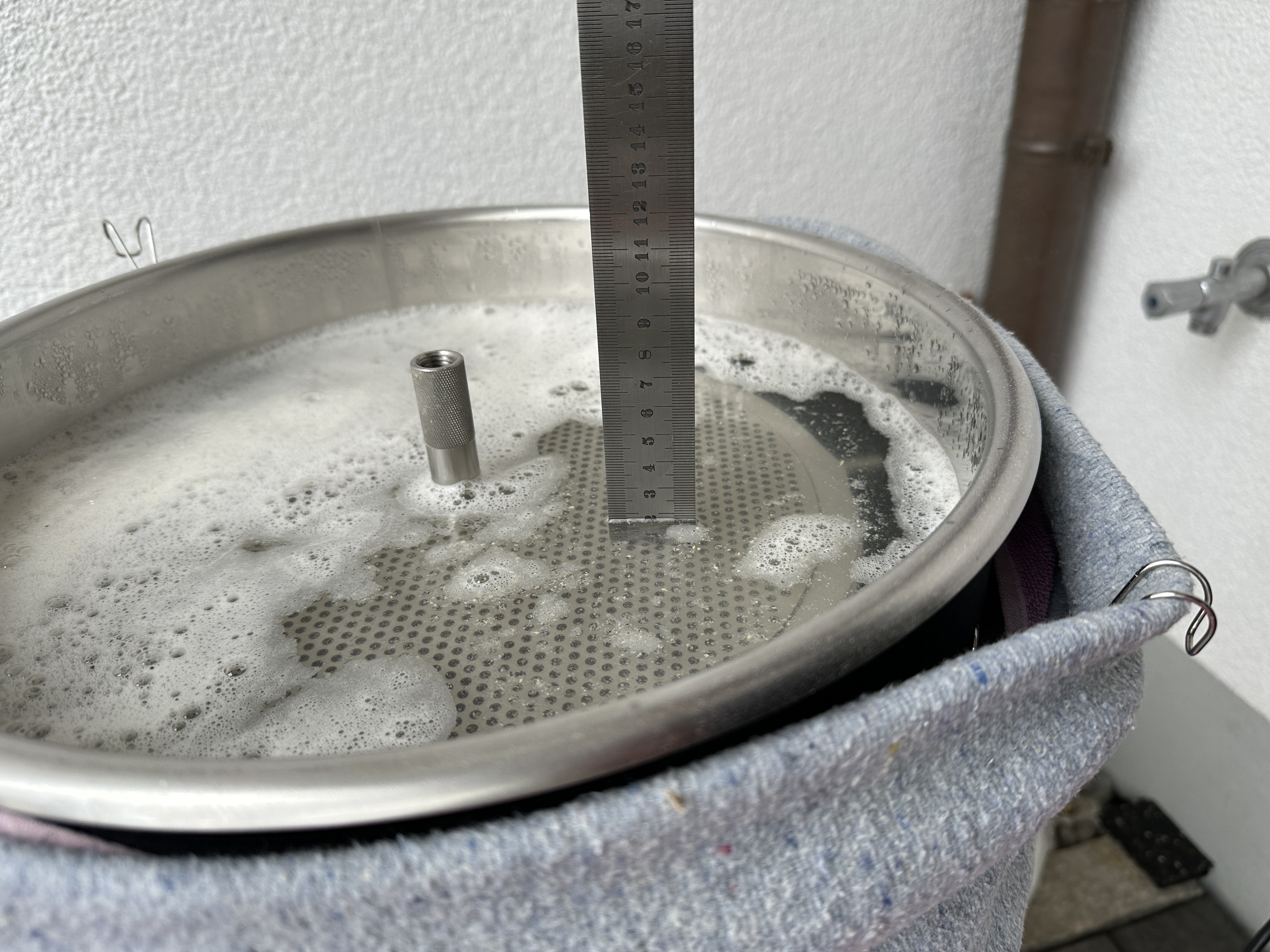 Nun hatte ich das Phänomen, dass ich nach ca. 45 Minuten die hier auch bereits beschriebenen Fontänen hatte und ich hatte meine liebe Mühe, das halbwegs "im Zaum" zu halten, damit es nicht das gesamte Brauzimmer versaut, sondern nur einen Teil davon.