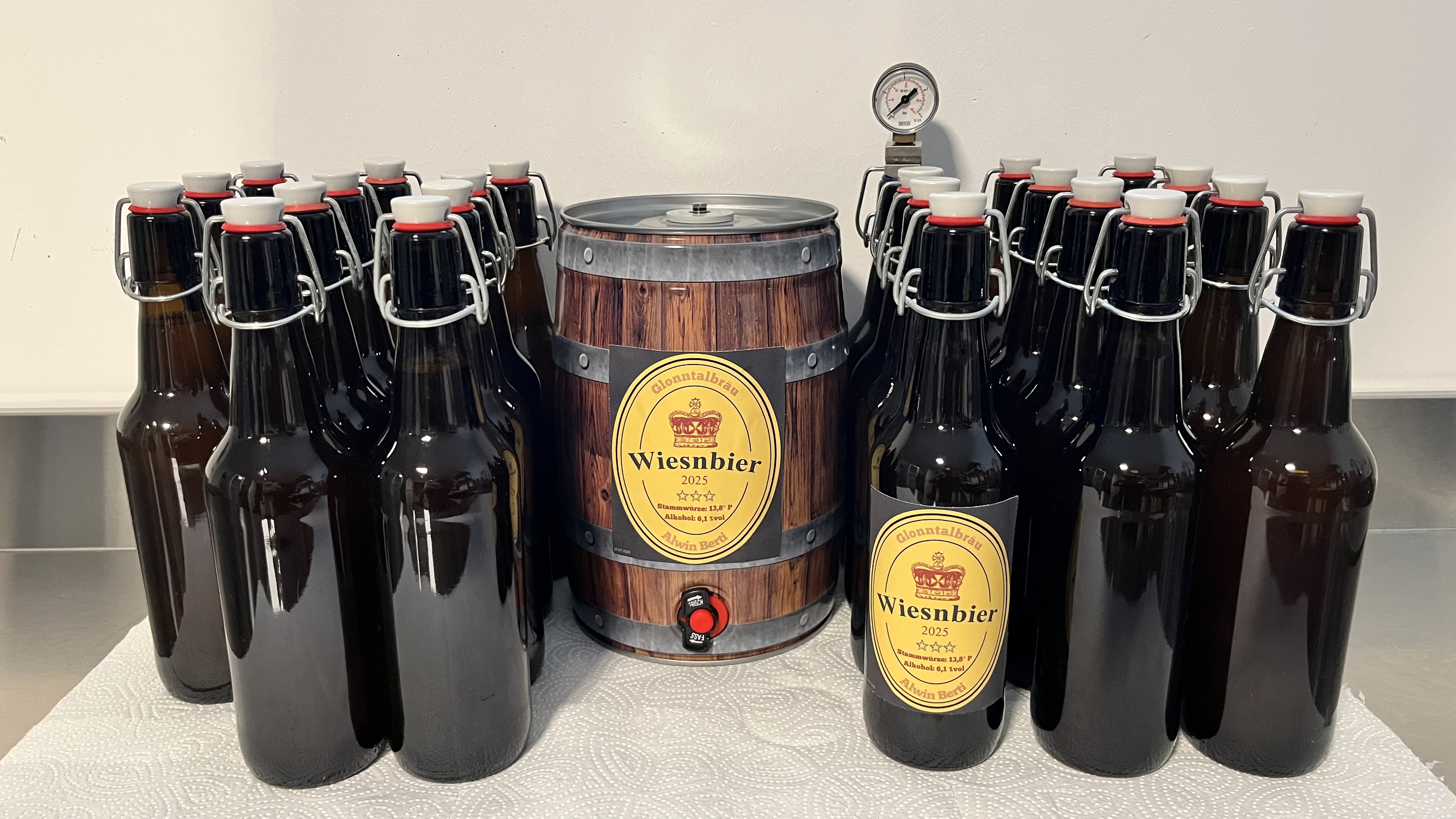 15 Liter landeten schließlich in den Flaschen, aktueller Flaschendruck 1,8 bar.