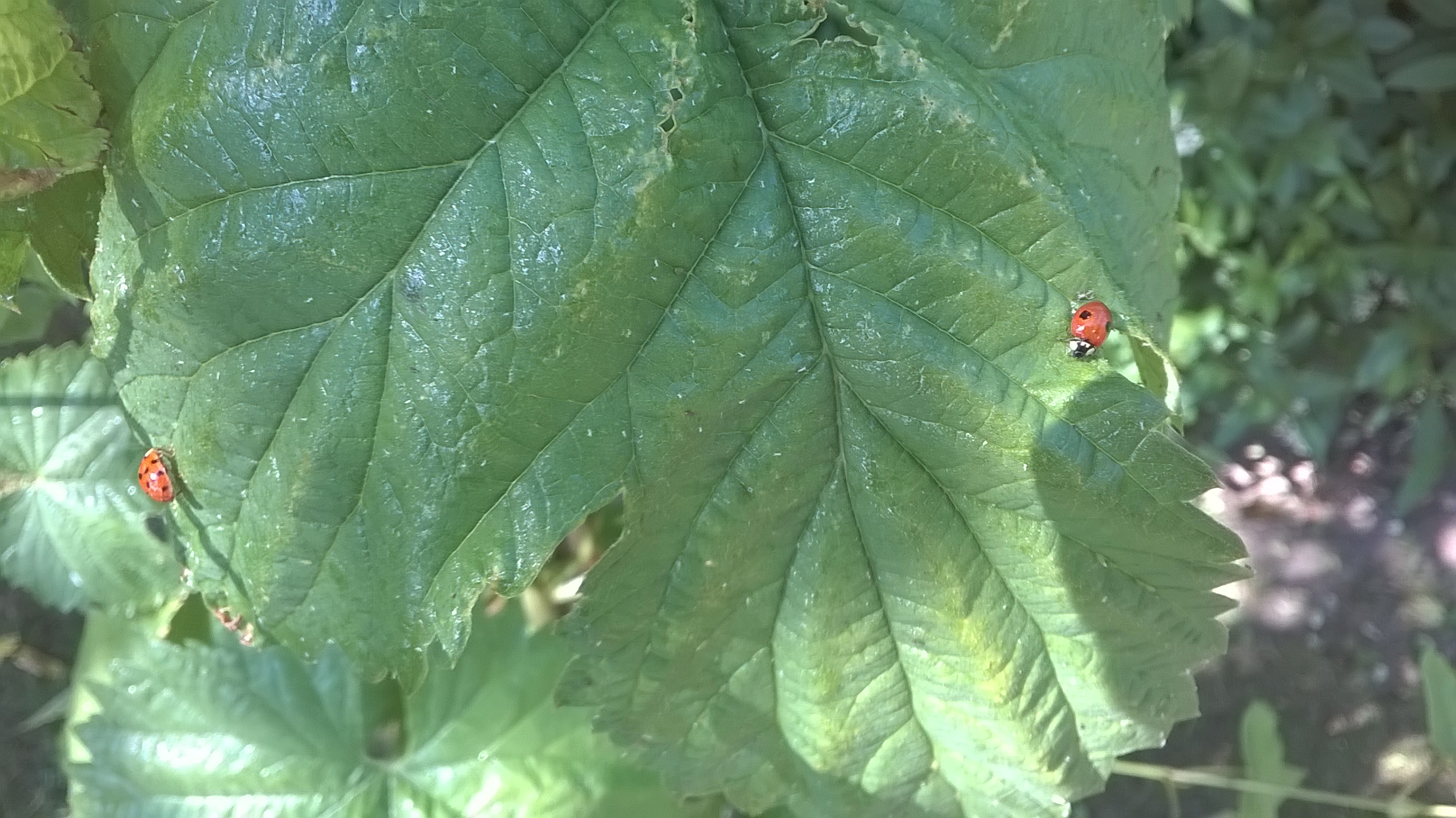 Eine sehr gute Hilfe sind diese Kameraden hier. Die mögen meine Pflanzen und haben mit den Läusen kurzen Prozess gemacht. Das gibt 2015 wieder BIO-Hopfen