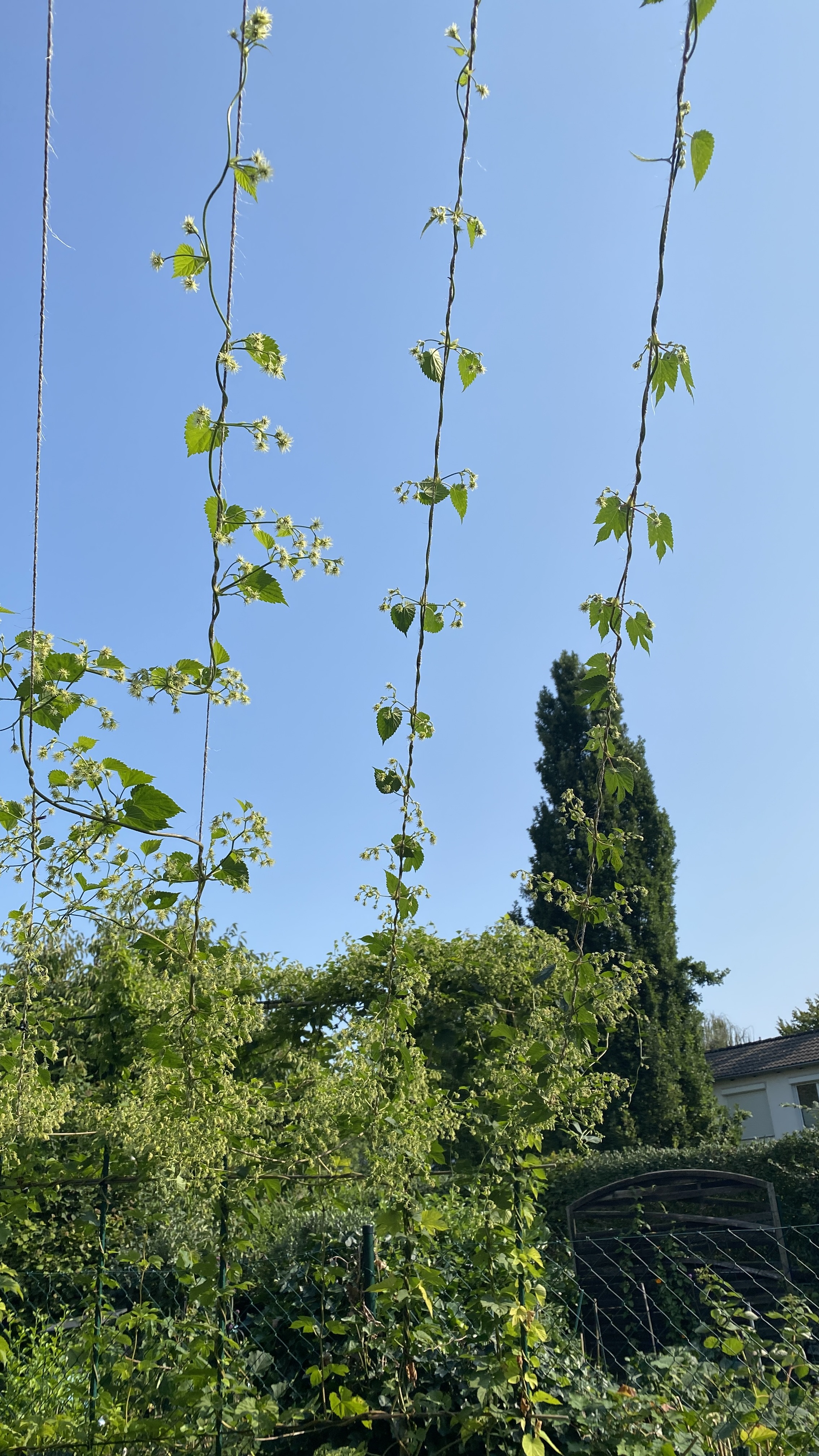 Dieses Jahr beobachte ich das Wachstum vom Hopfen und nächstes Jahr sieht man weiter.