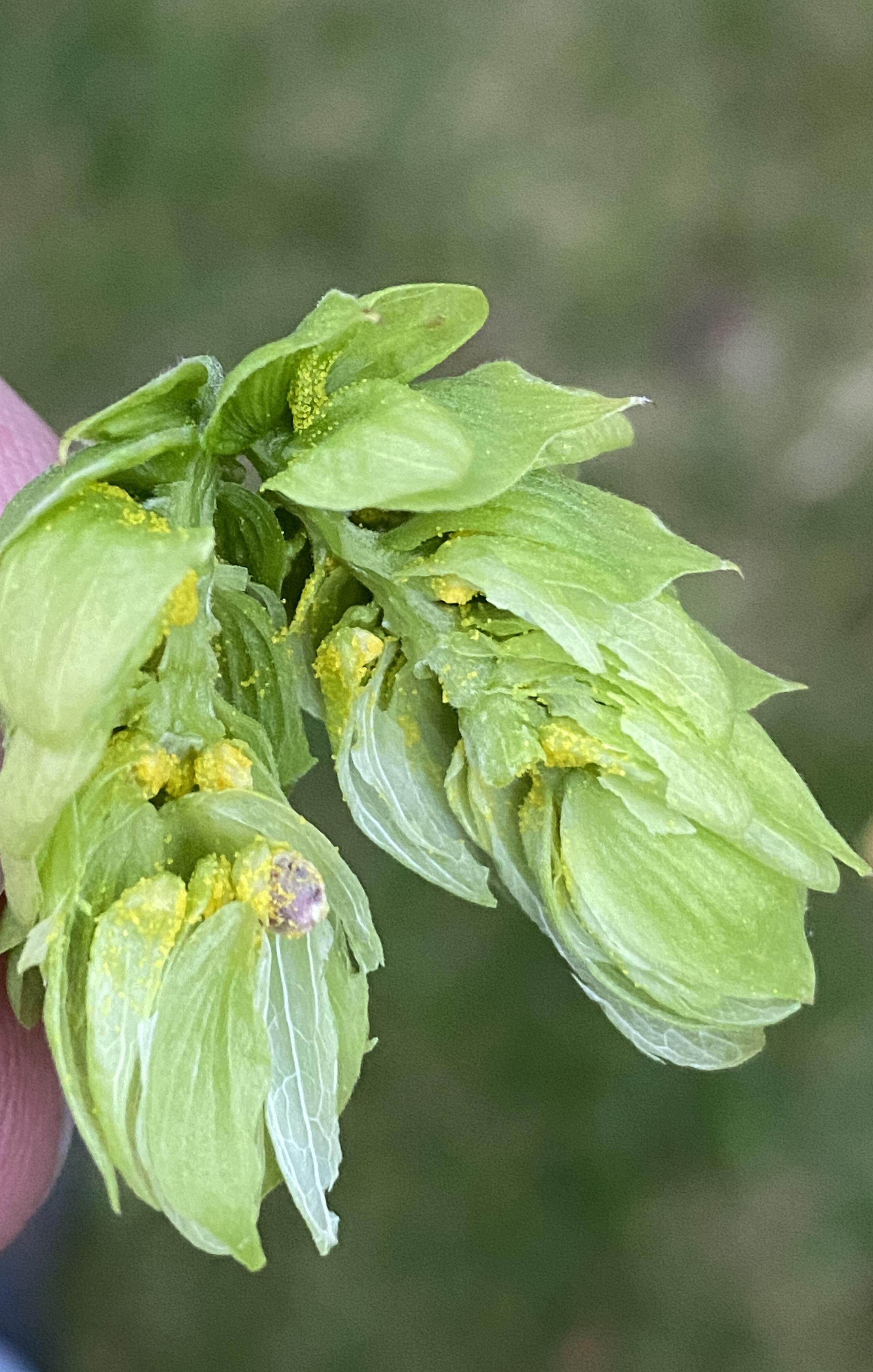 na, du hattest schnell geantwortet, hab nicht damit gerechnet und gar nicht gesehen bis gestern. War kurz danach in Urlaub und nicht mehr dran gedacht. Inzwischen sieht es so aus (s. Fotos). Hab gestern geerntet für mein Brautag nächste Woche (ich benutze die aus dem Garten als Bitterhopfen). Da ist schon Lupulin zu sehen, und es raschelt ein bischen. Aber mal schauen, vielleicht entwickelt es sich noch weiter bis zum Brautag, die Hälfte ist noch da, denn ganz toll stark nach Hopfen riechen die Dolden nicht (einzelne höchstens). Ich habe sowieso vor, etwas beizumischen (Hallertau-Herkules). Letztes Jahr hatte ich Mandarina Bavaria beigemischt als zweite Bitterhopfen, hat gut funktioniert.