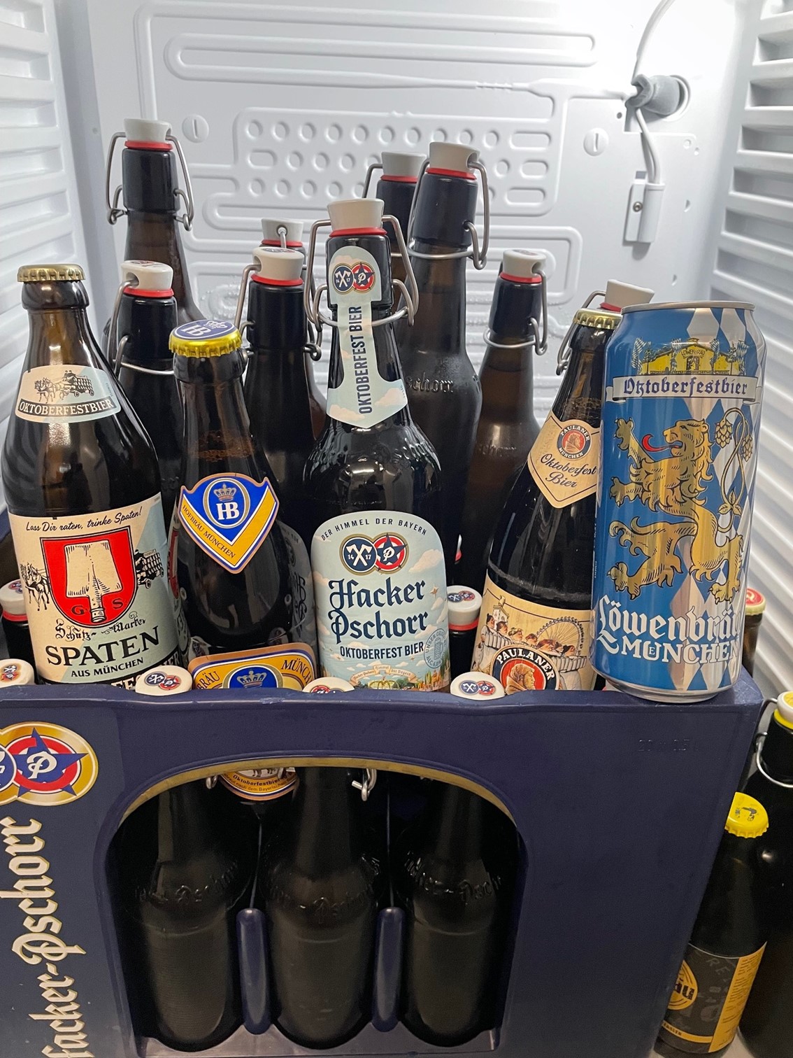 ich war gerade einkaufen. Die üblichen Verdächtigen plus noch ein paar Festmärzen. Augustiner gibt es diesmal bei uns nicht. Das Hacker scheint diesmal das Oktoberfestbier zu sein (hellblaues Etikett) und nicht, wie sonst üblich das Festmärzen.