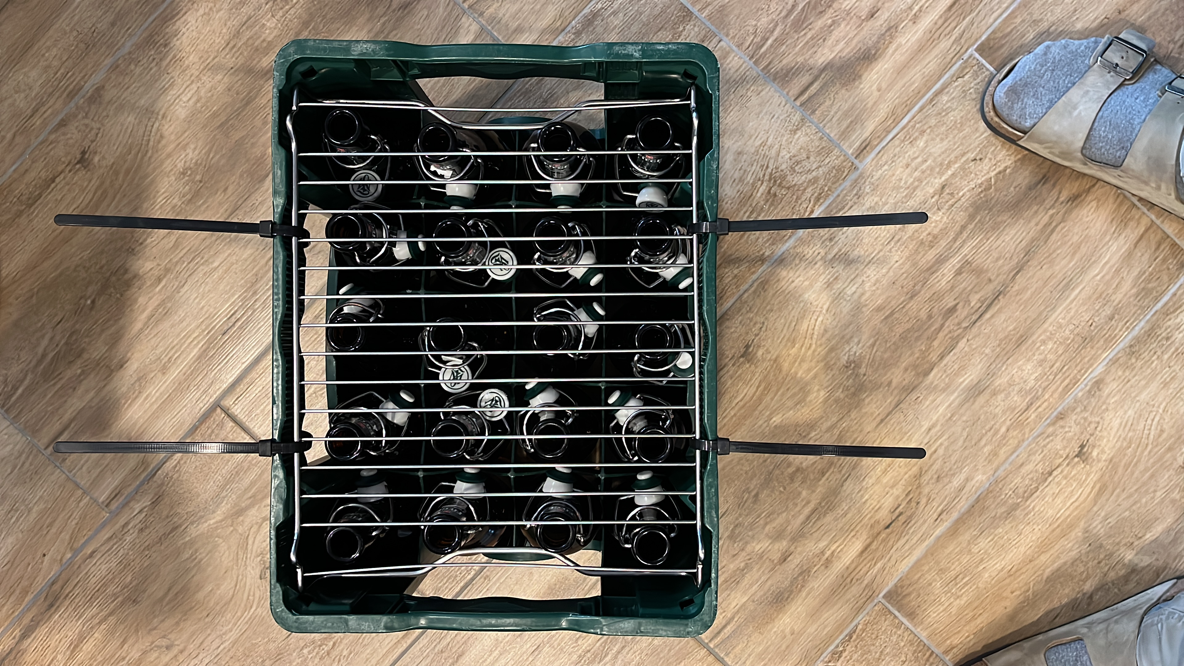 Ich bastle gerade an einer Lösung um ganze Kisten Bier in einem großen Gefäß/Bottich in z.B. OXI oder Geschirrreinigerpulver einweichen zu können.
