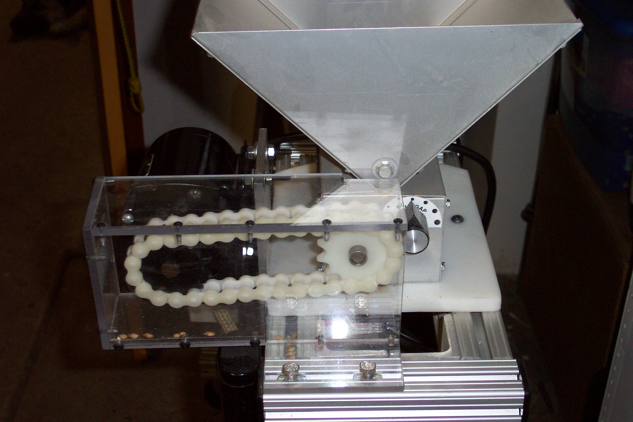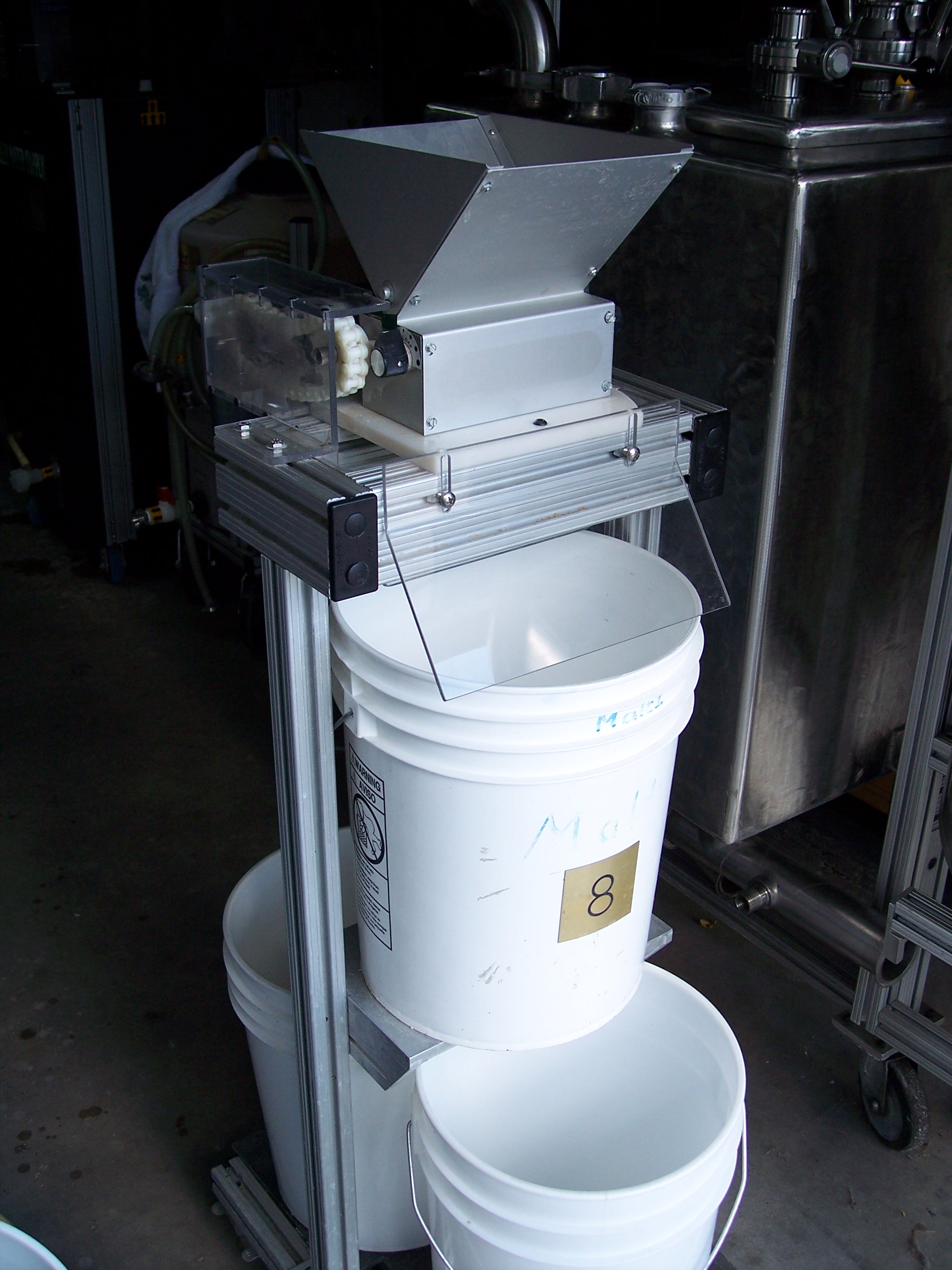 Die Malzmühle wird zur Zeit in das automatische Malzsytem integriert, man schickt das Rezept zur Electronik und zurück kommt die richtige Malzmenge und Sorten geschrotet.