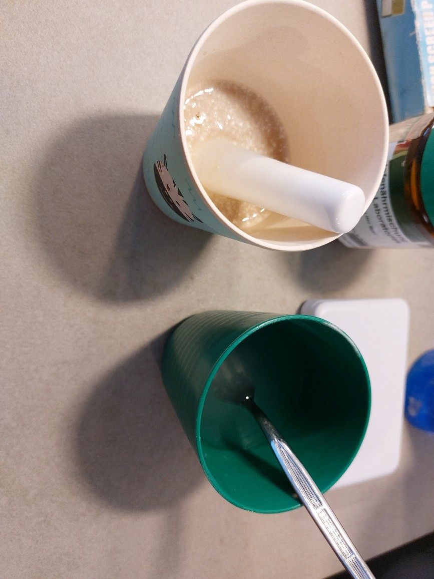 Unsicher war ich mir dann doch bei der Menge an "Chemie". Im Video werden 0,8g Sodium Hydroxide benutzt, ich habe stattdessen 5 g Calciumhydroxid genommen aber dann spontan entschieden, dass mir das zu viel des Guten ist und nur die Hälfte verwendet.