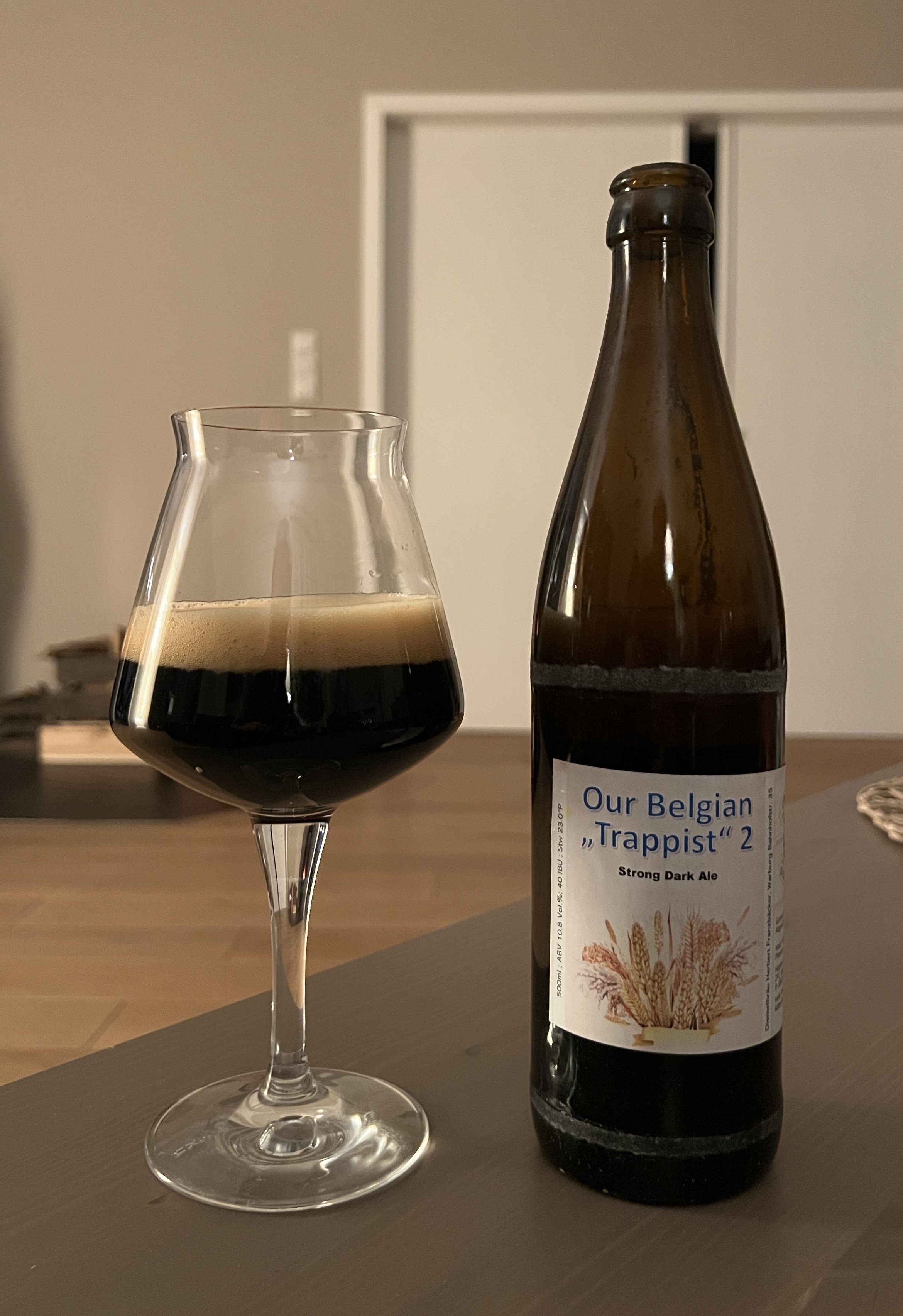 Ein trappistisch angehauchtes Belgian Dark Strong Ale von Braukollege Herbert52. Wunderbar, aber relativ bitter. Das war am Anfang etwas ungewohnt. Mit 10,8 % in der praktischen Halbliterflasche. Ich gehe jetzt zu Bett :puzz
