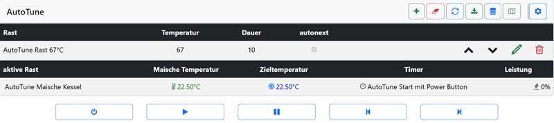 Überprüfe das AutoTune Ergebnis mit einem Mini Maischeplan.