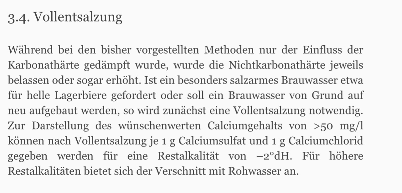 Ich habe einen Mischbettvollentsalzer, das Wasser ist also kein Problem. Für die meisten Biere komme ich mit 6 dH und etwas aufsalzen auch so zurecht. Es geht mir um die Zielgrößen, wenn ich das VE Wasser ggf. noch etwas anpassen muss.