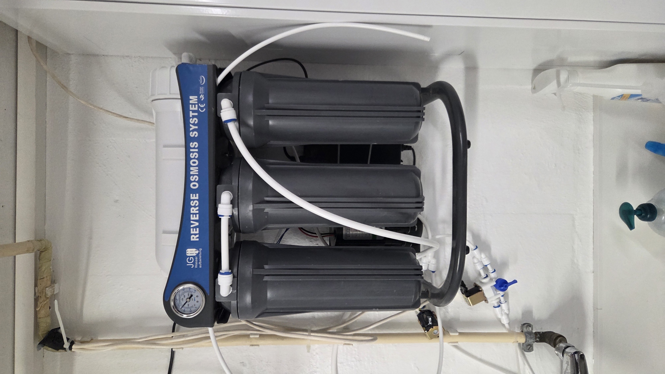 Denn mein Wasser wäre eigentlich perfekt, nur der Bicarbonatwert von 160 mg/l spielt nicht mit. Abkochen oder mit Destilliertem Wasser verdünnen kommt für mich nicht in Frage (auch diese Harzfilter nicht). Ich habe mich daher dazu entschlossen eine Umkehrosmoseanlage zu kaufen.