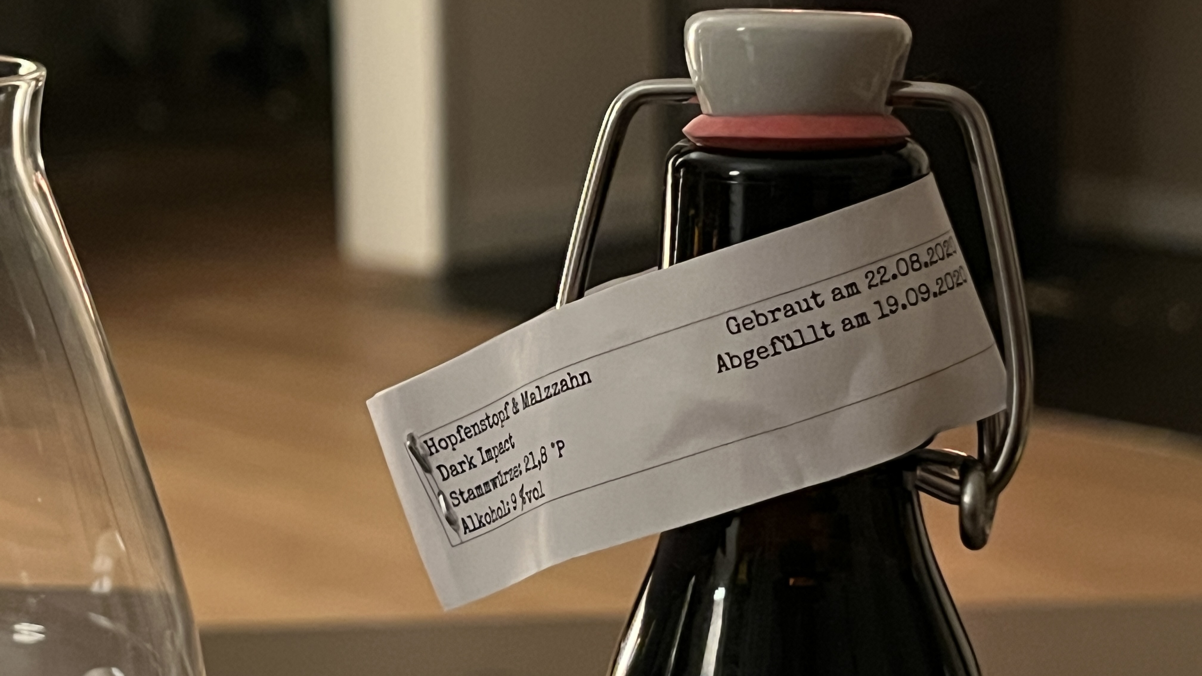 Ein Dark Impact von 2020. Immer noch ganz ordentlich. Etwas Umami, wahrscheinlich Autolyse, aber kein Katzenfutter. Keine störenden Aromen, nur sanft gealtert. Eine habe ich noch, die gibt es dann zum 10-jährigen Jubiläum. Von diesen einfachen Banderolen kommt die Schreibmaschinenschrift, die wir heute immer noch haben. Ist bestimmt fast 100 Sude her.