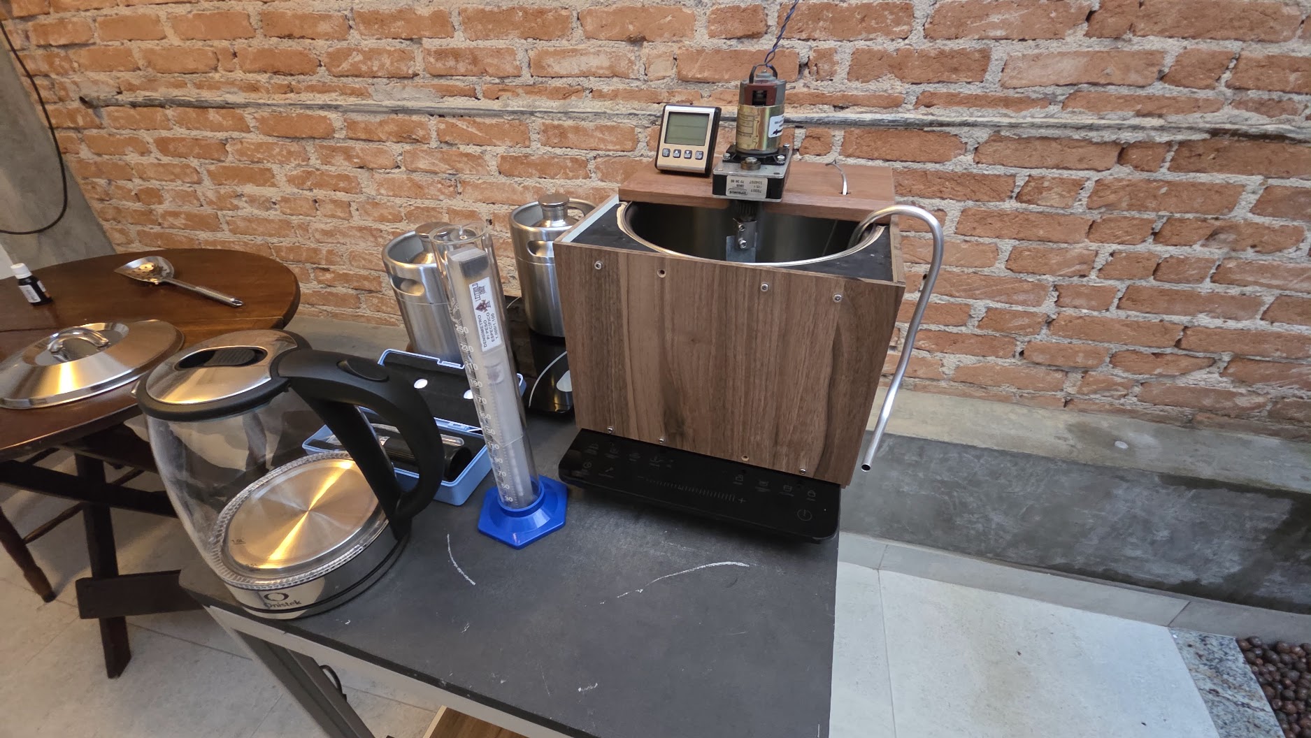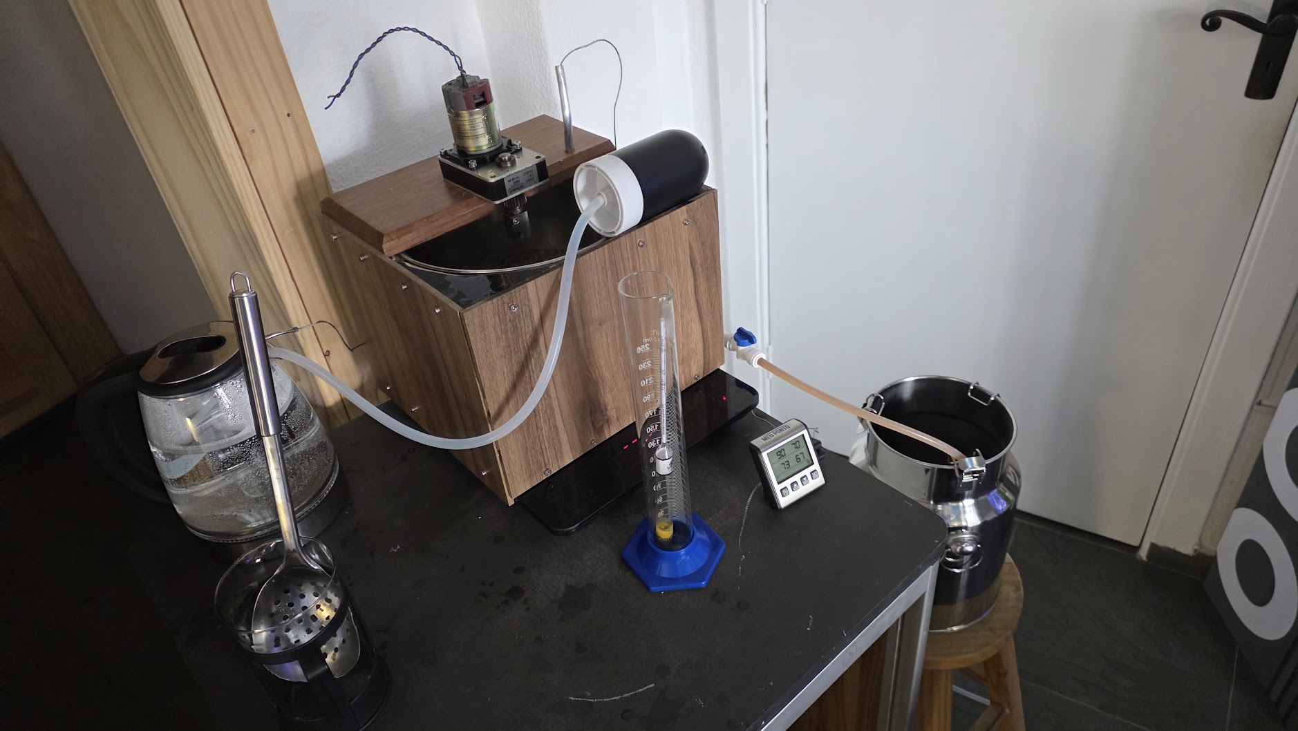 Also, habe ich mein zweites erstes Projekt so aufgezogen das die Wiederholbarkeit an erster Stelle steht. Platz und Muehe sind schon jetzt sehr angenehm, ich habe das dritte mal gebraut und bin sehr begeistert! Es wird noch sehr viel an den Geraetschaften gebastelt, ich habe also vor diesen Eintrag immer wieder zu aktualisiseren.