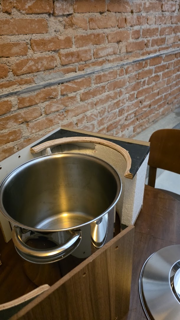 1x Induktionskochtopf 9,6L, sehr gut isoliert in eine Holzkiste und Styropor,