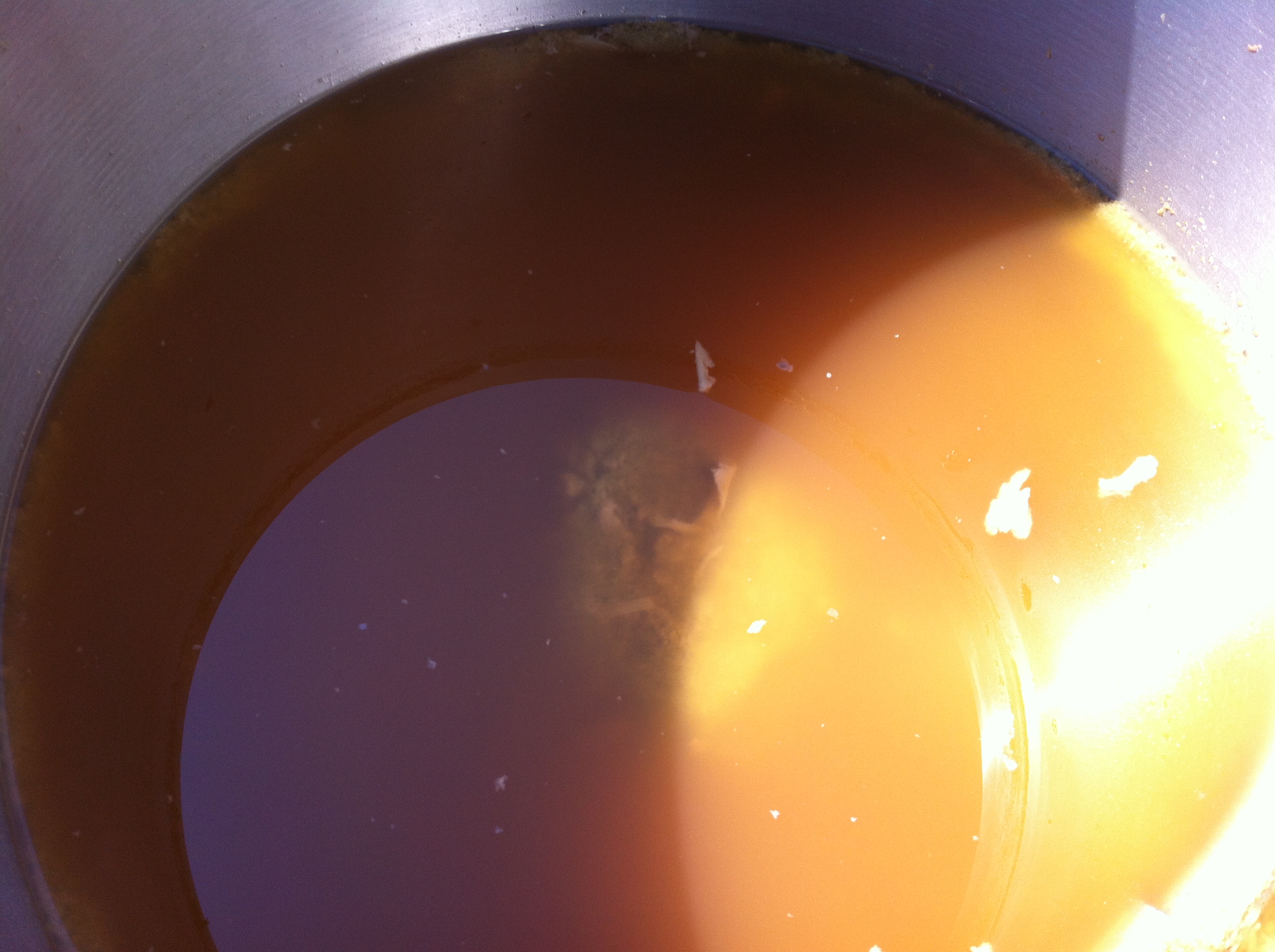 Und dann stockte der Fluß und ein Rest von ca. 3 Litern verblieb im Kocher und war auch nicht mehr zum Rauskommen zu bewegen. Dabei löste sich der Trubkegel wieder auf und wir brachen den Versuch ab. :Angry