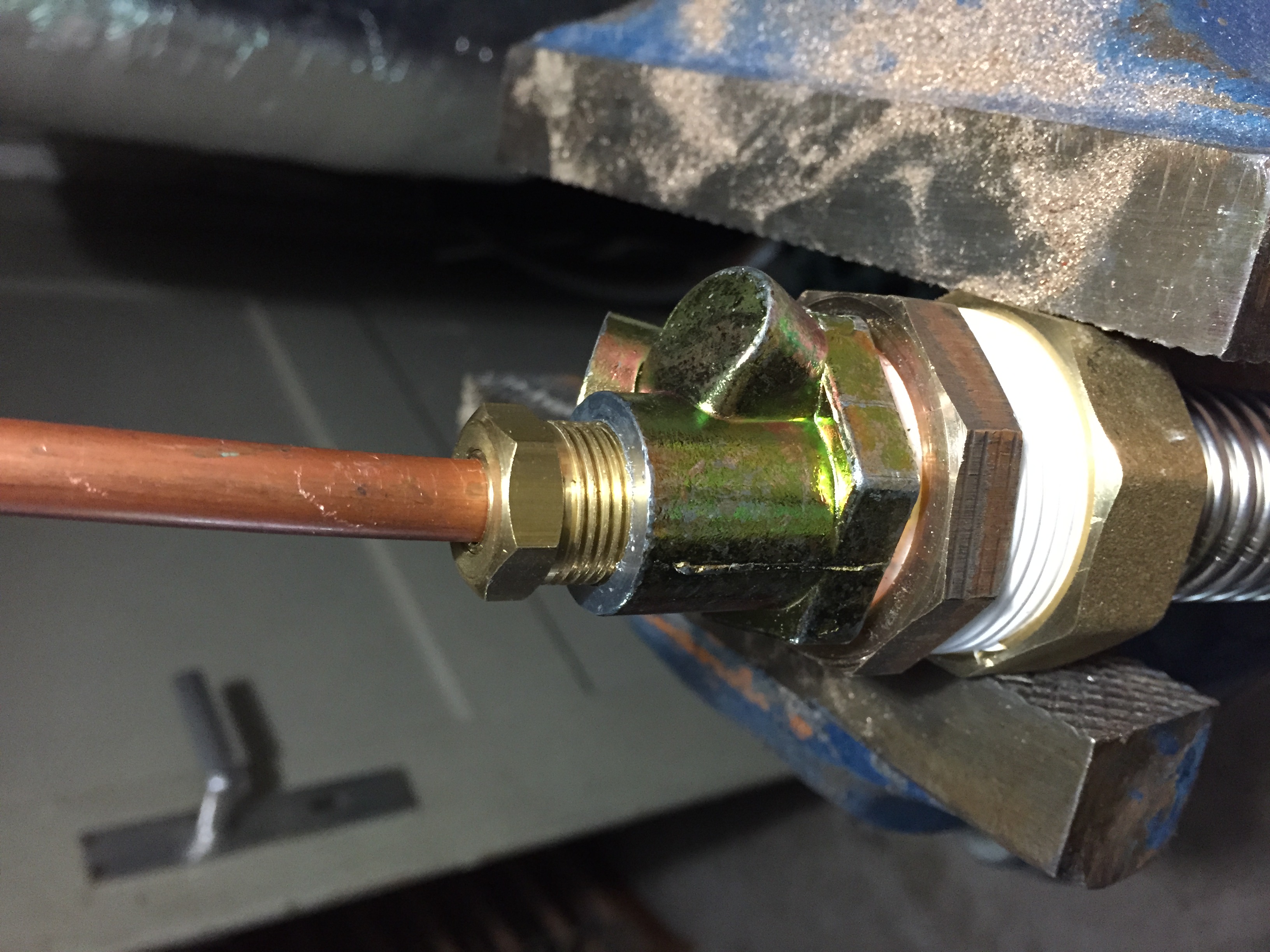 Das Kupferrohr ist per Schneidringverschraubung abgedichtet.