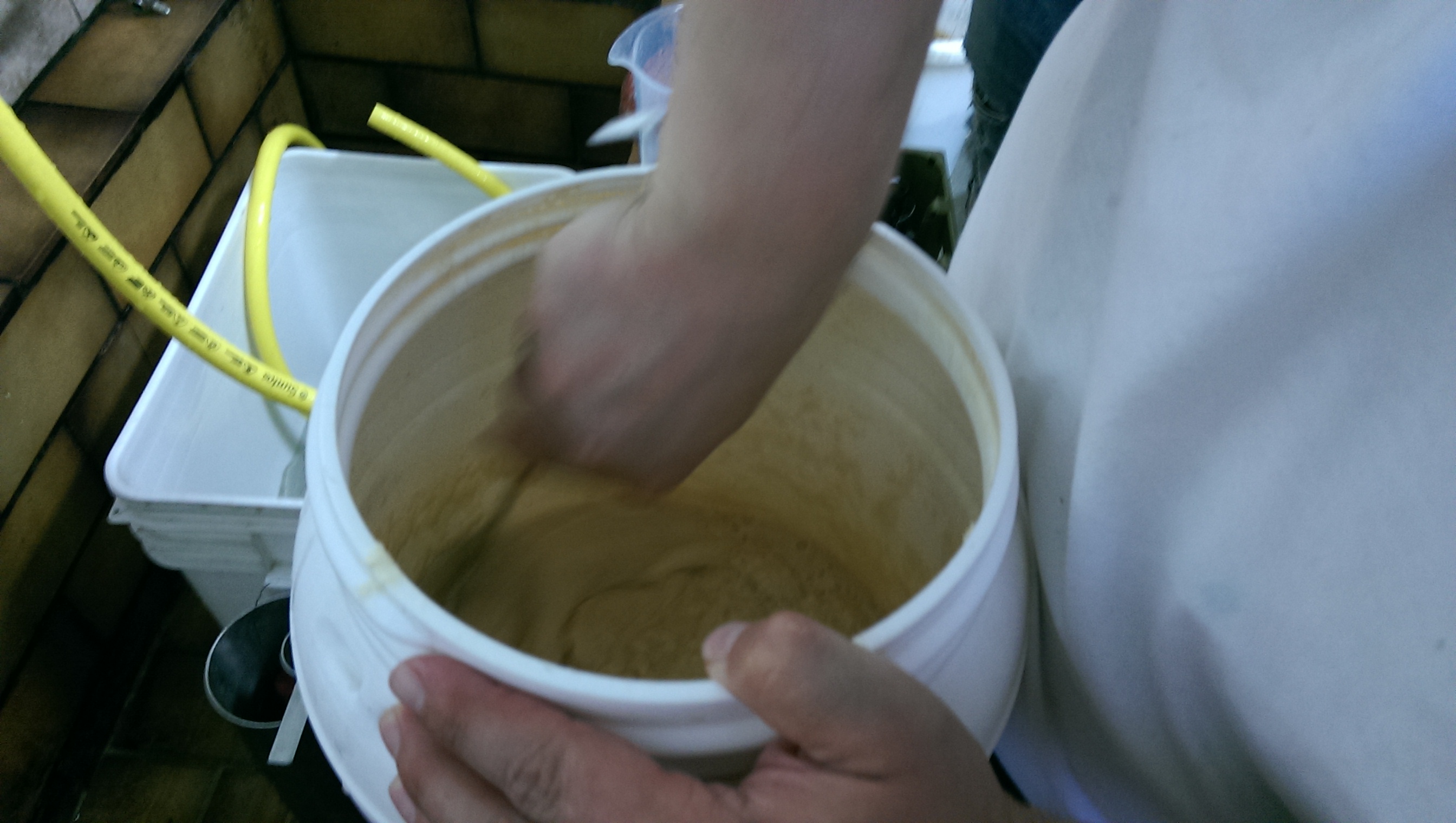 Der Eimer ist schön voll und ca. 25kg Malzschrot warten auf ein warmes Bad bzw. seiner Erfüllung :Smile