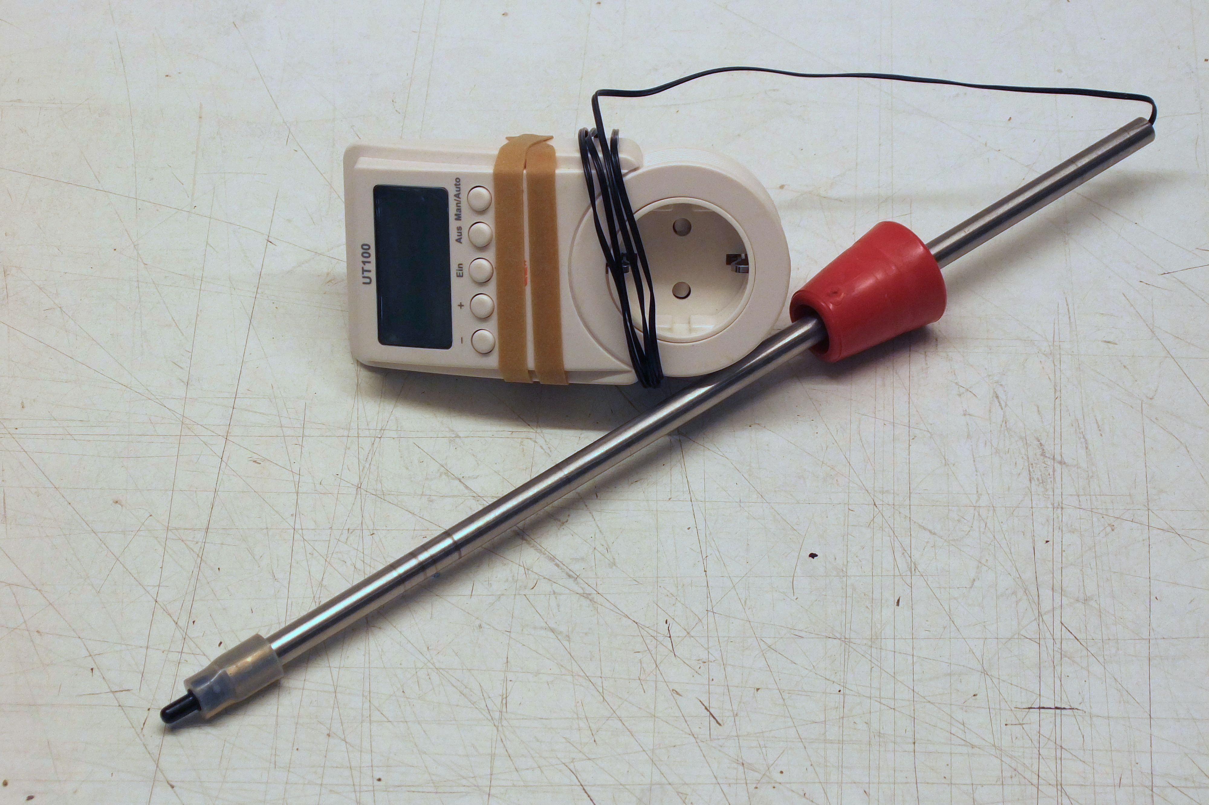 Ich nutze den Vorgänger UT100 an der Hendi zur Erreichung der Einmaischtemperatur. Den Sensor, der nicht in eine herkömmliche Tauchhülse passt, habe ich mit einem Schrumpfschlauch gesichert (und ein zweiter Regler liegt in der Schublade).