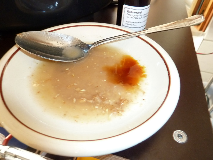 Dieses Wasser hatte sich über die Kochzeit im Flexschlauch angesammelt. Da werd ich beim nächsten mal wohl noch irgendwo einen Auslauf in die Leitung schustern.